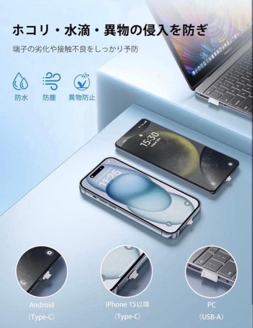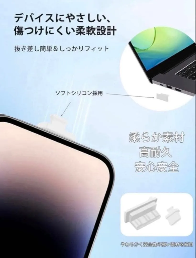 USB 防塵キャップ & USB-C カバー 柔軟シリコン製 スマホ/ノートPC