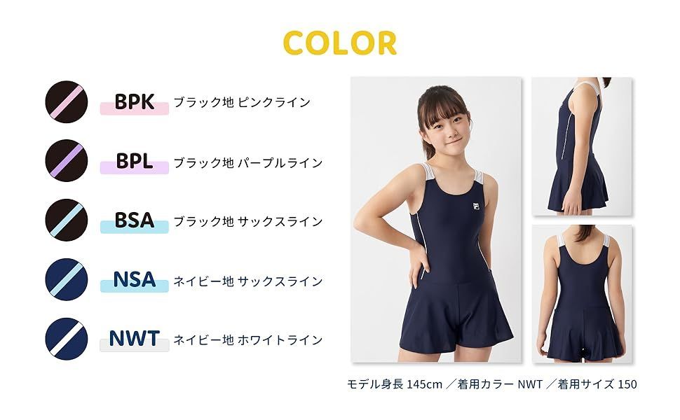 FILA スクール水着 キュロット ワンピース UVカット 174101 ガールズ 素材構成ポリエステル、ポリウレタン 取り扱い案内手洗いのみ クロージャータイププルオン トップのスタイルワンピース