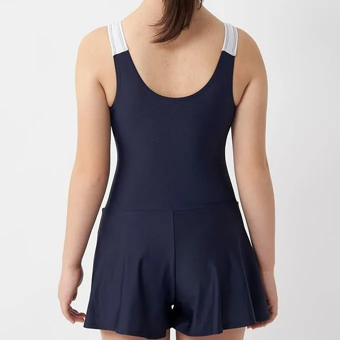 【キュロットワンピース】広がりすぎないAラインのキュロット部分がヒップラインを可愛くカバー。インナーが一体になっているので水中でもめくれ上がらない設計です。