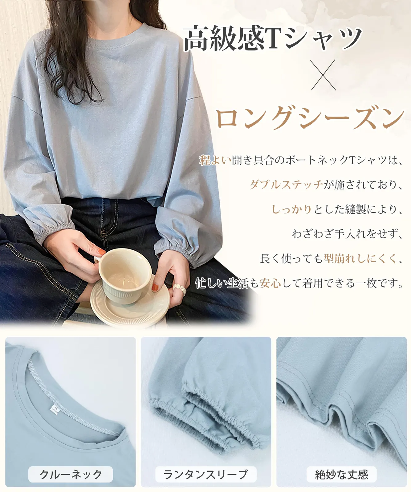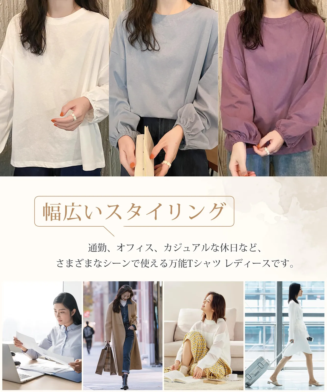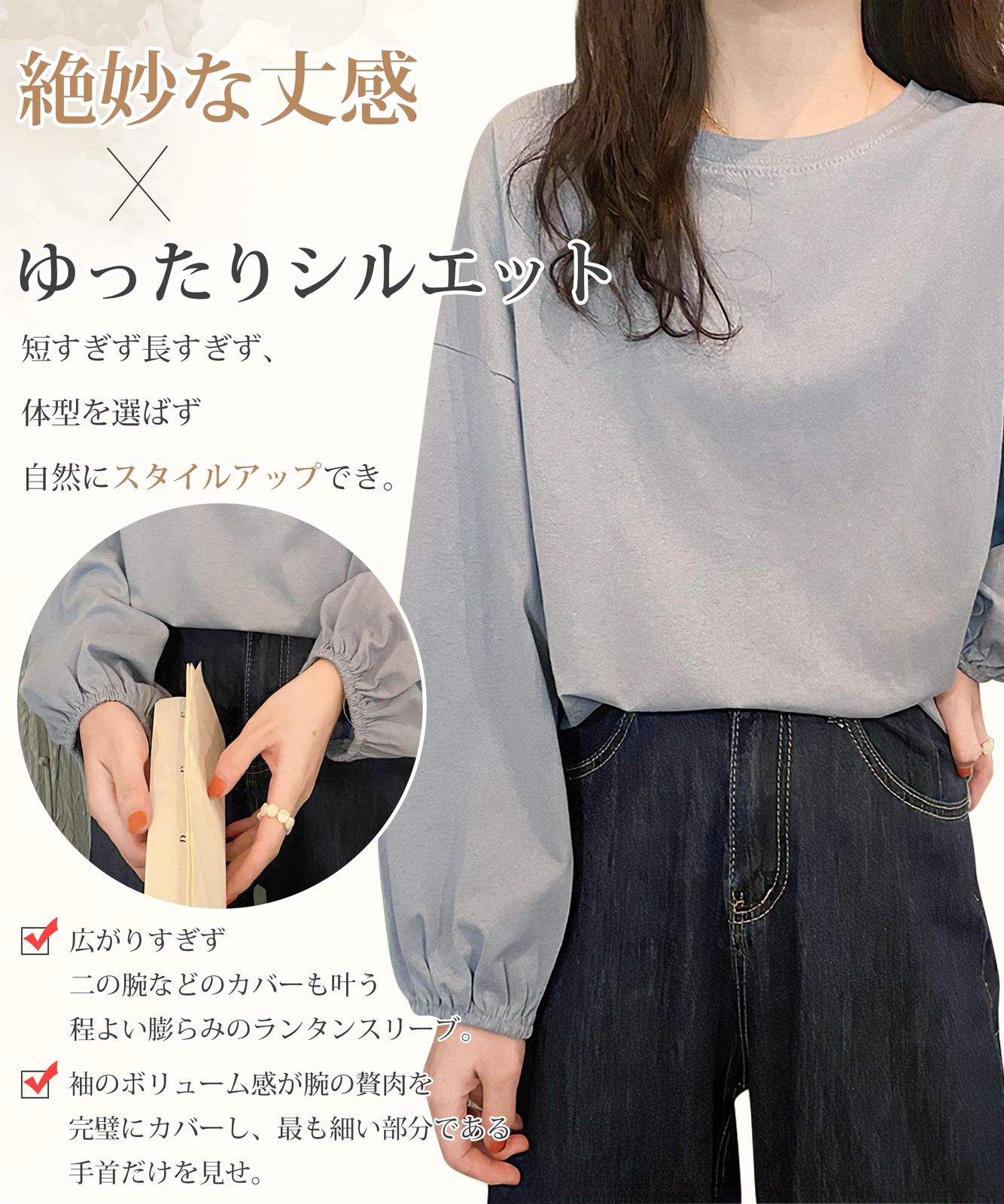 【秋冬の主役・絶妙な丈感・リラックス感】Tシャツ カットソー ティーシャツ 丸首 ランタンスリーブ カジュアル ボリュームスリーブ ゆったり 無地 着回し 着痩せ 重ね着 通勤