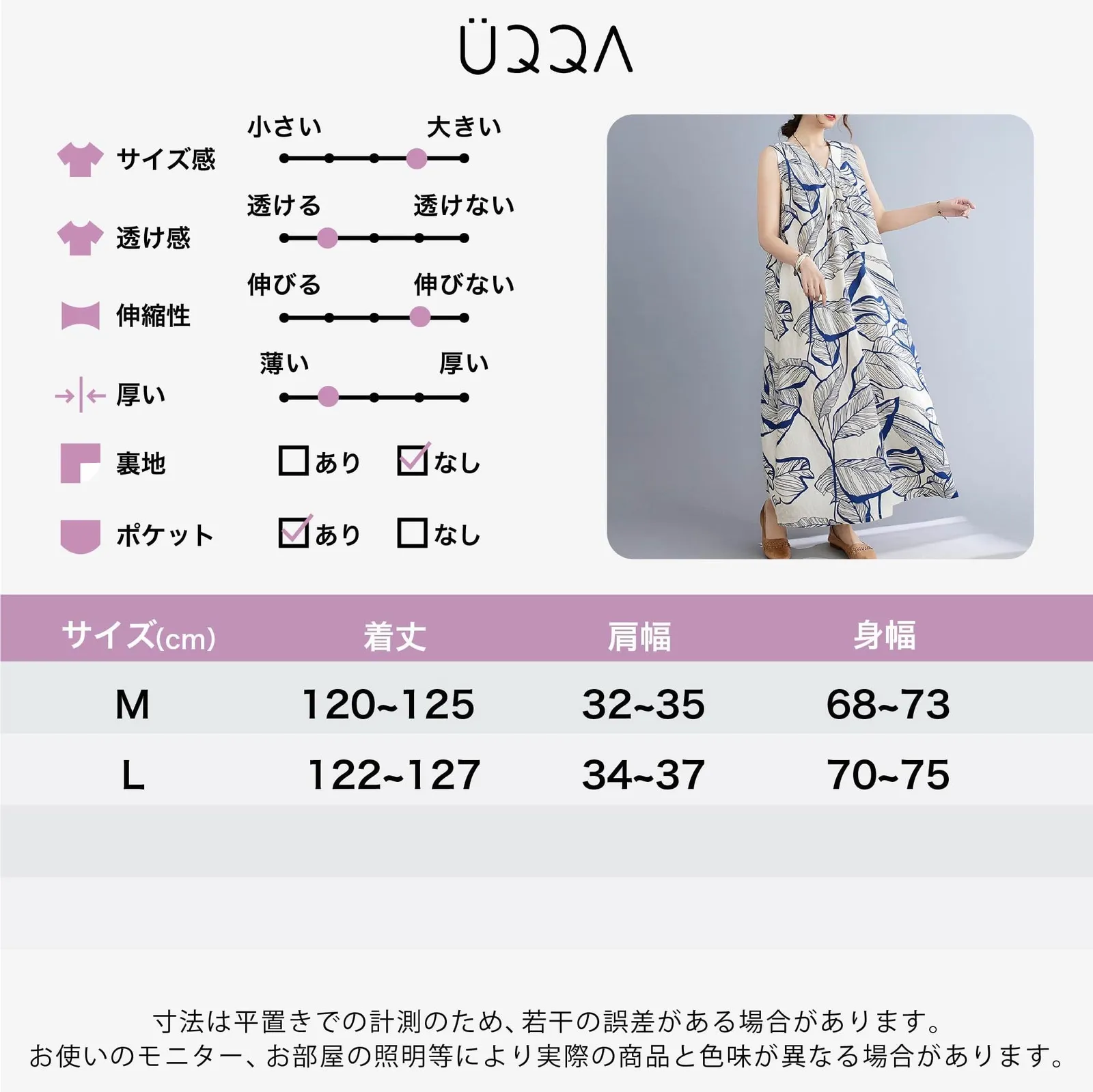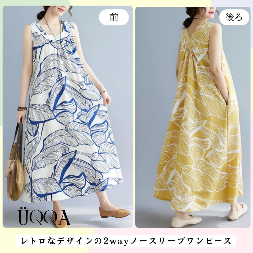 レトロなデザインの2wayノースリーブワンピースが登場! 華やかに彩る、上品なノースリーブロングワンピースは一枚でもお洒落に決まり、動くたびにふんわり揺れて、女性らしさ溢れるシルエットを演出できます◎ 品のある大柄が目を惹く、大人のエレガンスな夏ワンピースです。 毎日着たくなるような締め付け感なしの楽ちんでストレスフリーな着心地を提供します。 ふんわり揺れるスカートが華やかさを演出し、身体のラインを拾わないゆったりとしたシルエットで大きいサイズの方やマタニティの方にも着やすく体型カバーも叶う一着です。 身幅が広めで少しルーズなシルエットでリラックス感が漂います。