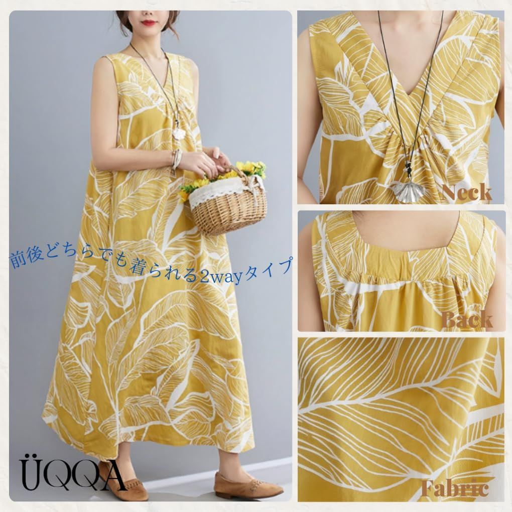 [UQQA] ノースリーブ ワンピース レディース 夏 Vネック マキシ丈 リゾート ポケット付き