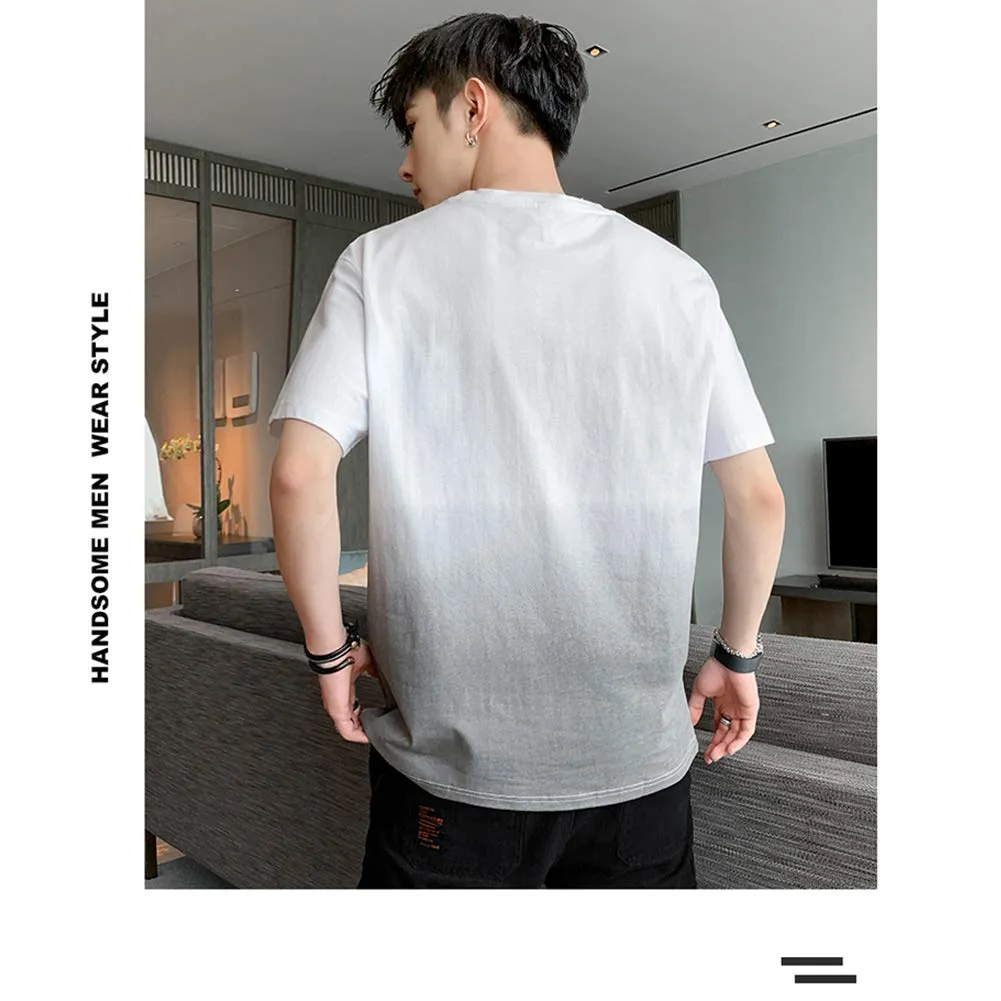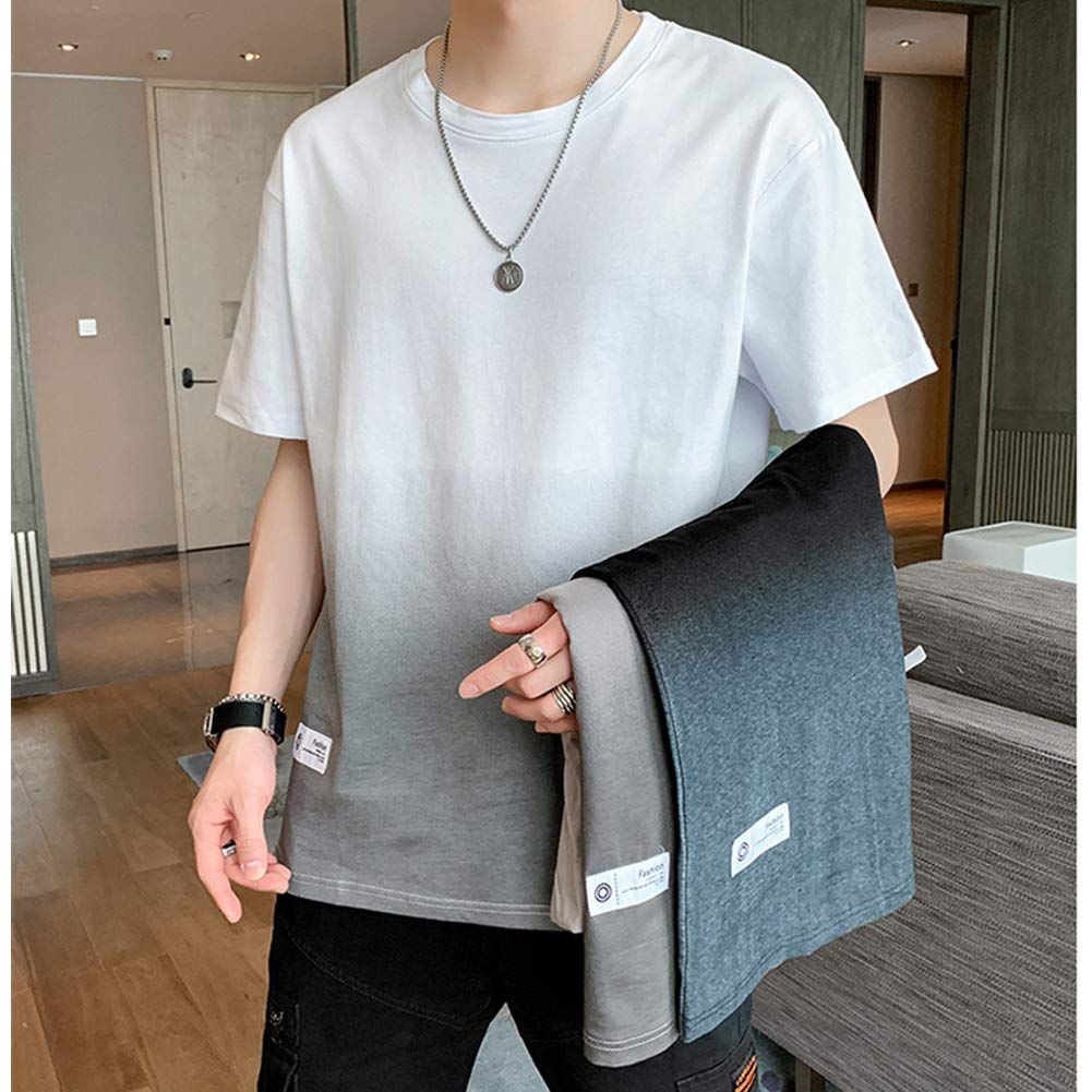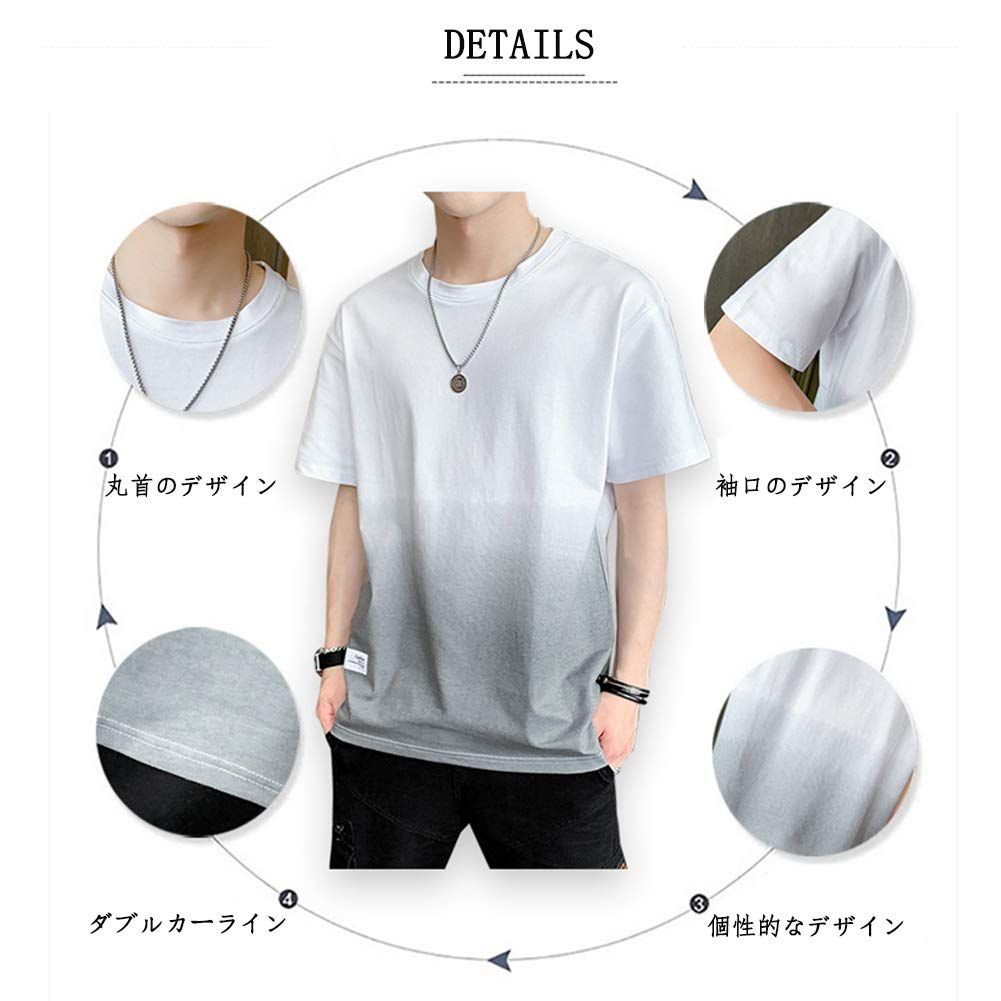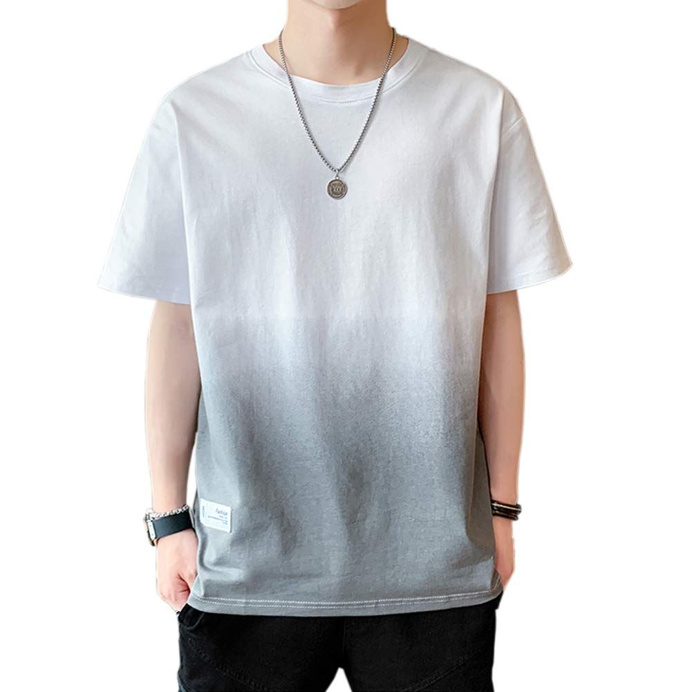 [Anzn] Tシャツ メンズ 半袖 夏服 綿 ビッグt グラデーション カットソー カジュアル ゆったり おしゃれ 丸襟 快適 軽い 柔らかい 大きいサイズ 春 夏 秋