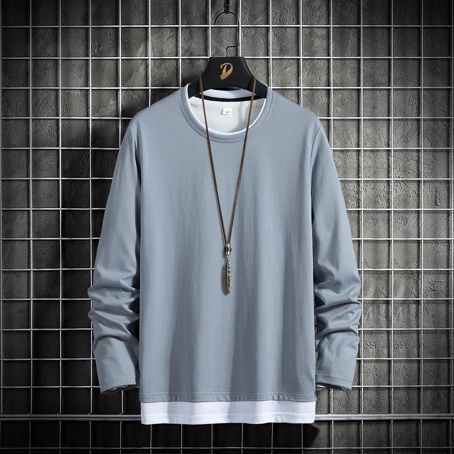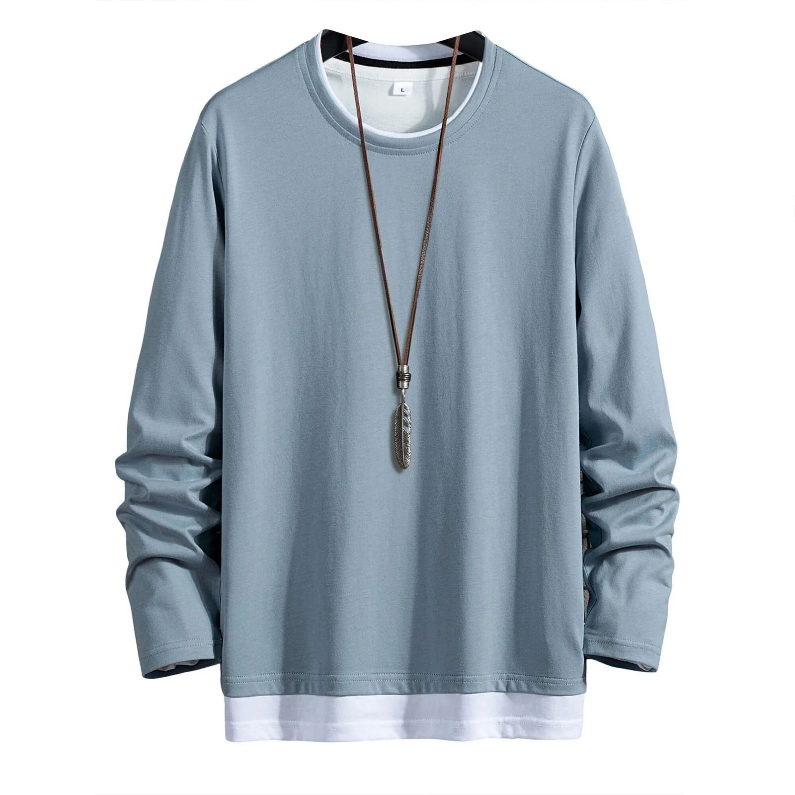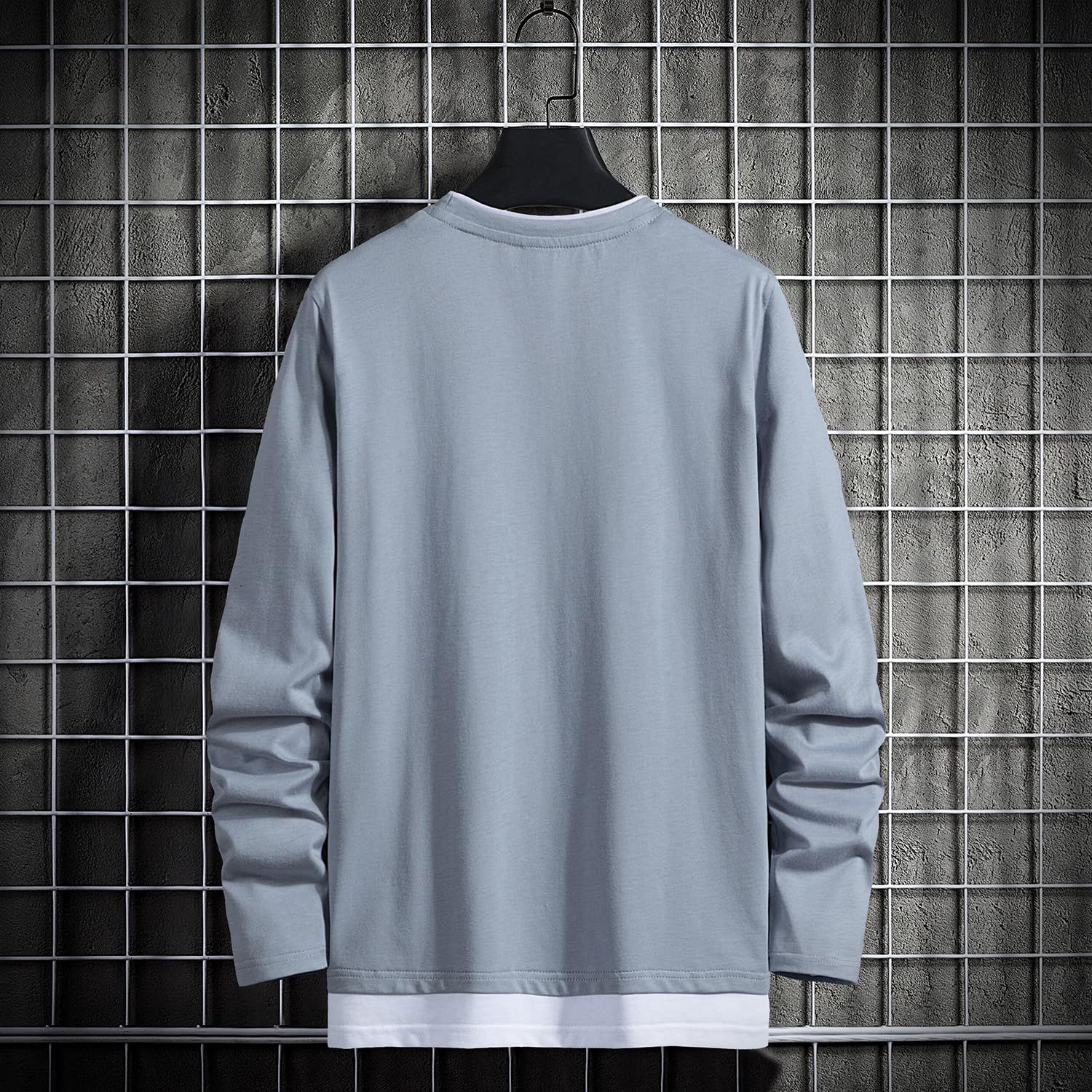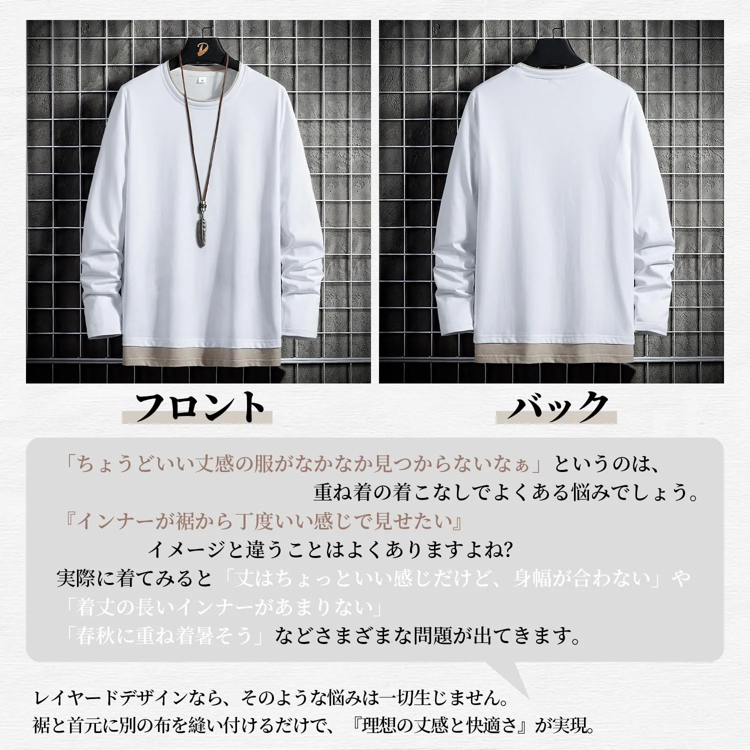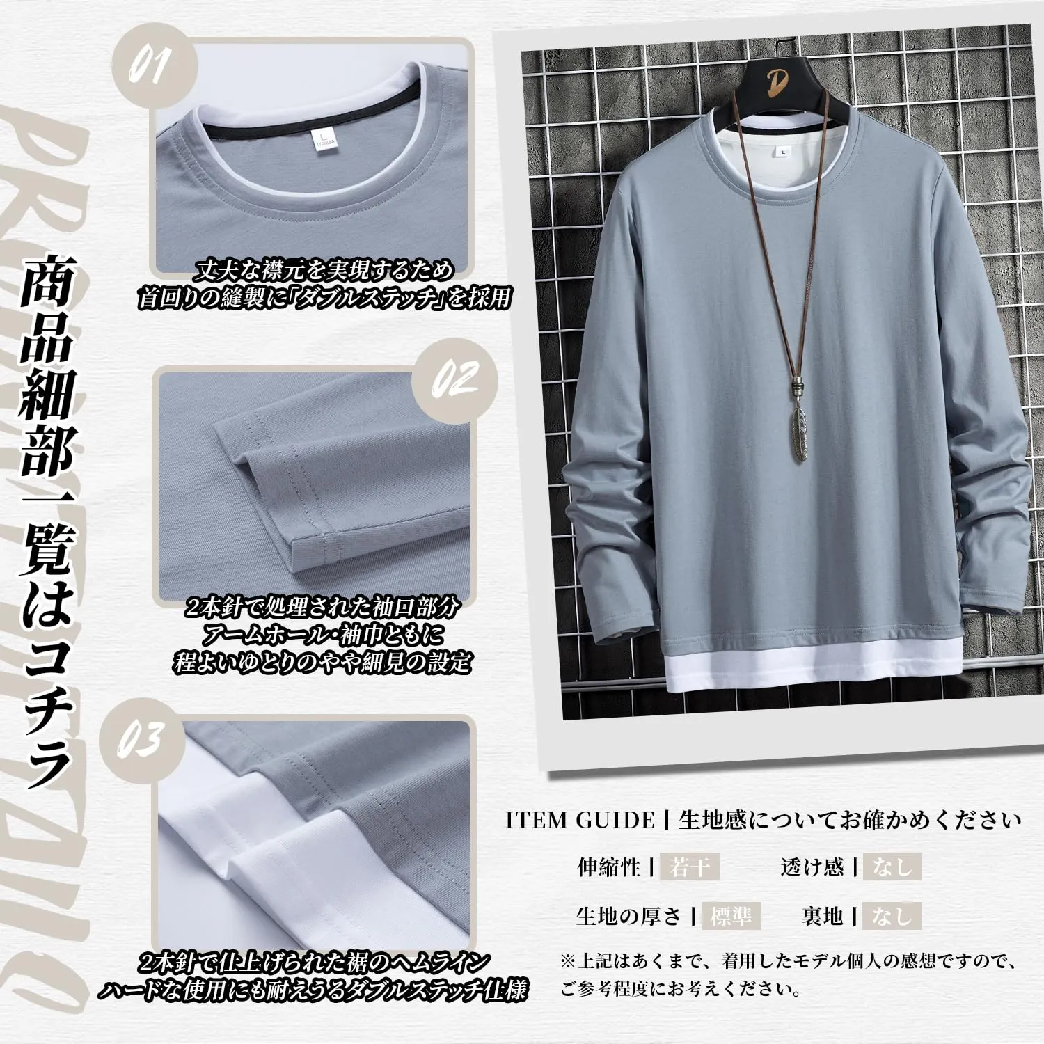[W Wonyo] 長袖 Tシャツ メンズ 秋服 重ね着風 ロングtシャツ 配色切替 ティーシャツ おしゃれ ロンt 大きいサイズ ろんてぃー 人気 ロンティー 快適 トップス 綿100 カットソー かっこいい服 ながそで てぃーしゃつ 春 秋