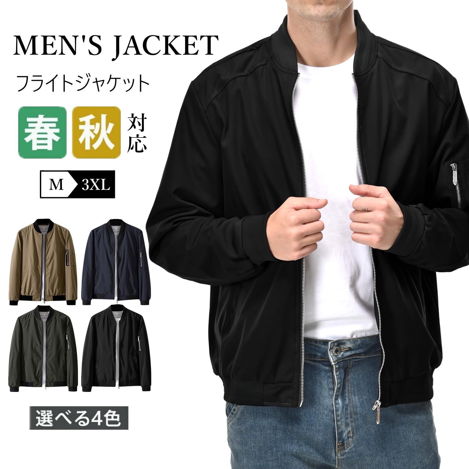 [Drsshnx] ジャケット メンズ ブルゾン 薄手 ライトジャケット メンズ 秋服 スタジャン バイクジャケット エムエーワンジャケット カジュアル おしゃれ かっこいい アウター お洒落 春秋冬