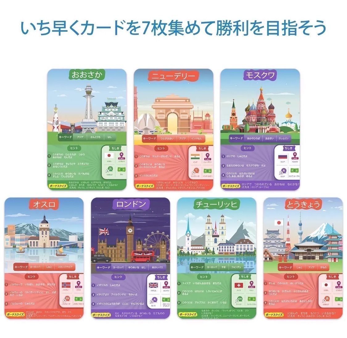 【HK21】 Skillmaticsカードゲーム『これな~んだ?10 世界の町編』 | 8歳以上対象 | 質問して頭が良くなるお手軽ゲーム | トラベル&ファミリー向けゲームの決定版 1,980 送料込み(出品者負担) 0 在庫残り1点 商品の説明 お届けする物は、画像後半の写真に写っているものが全てです。 付属品等は写真でご確認ください。 写っていないものに関しての返品•返金は、ご対応致しかねます。 また、送料削減のため、箱なしで発送する場合があります。 予めご了承ください。 ▪️コンディション▪️ 新品未使用 ▪️商品説明▪️ 質問ゲーム: ゲーム カードに書かれた国に関する 10 個の質問に回答します。都市はアジアにありますか? 観光地ですか? 国の首都ですか? よく考えて賢く質問し、ヒント カードを賢く使用してください。最初に 7 枚のゲーム カードを集めた人が勝者になります。 勝つための戦略を考えましょう: ヒントカードやボーナススクイーズを使って、最初に7枚のゲームカードを集める戦略を立てましょう どこでも遊べます: コンパクトなボックスには、ゲーム カード 50 枚とヒント カード 6 枚がすべて含まれており、持ち運びが簡単で、旅行にも便利です。友達と集まったとき、誕生日パーティー、家族の日、車や飛行機で旅行するときに、お子様と気軽に遊んでください。 素晴らしいギフトアイデア:子供、大人、両親、友人、家族、そしてもちろんカードゲームやボードゲームに最適なギフトです。 家族全員で楽しめる - 8歳以上の子供から家族まで楽しめる、完璧でエキサイティングなゲームです。 プレイヤーと平均プレイ時間: 国家の貢物を学ぶこの戦略ゲームは2〜6人のプレイヤーでプレイでき、平均プレイ時間は約20分です。 重要なスキルを養う:「これは何ですか?10」は、子供たちの社会的コミュニケーションスキル、問題解決、意思決定、創造的思考を養うのに役立ちます。