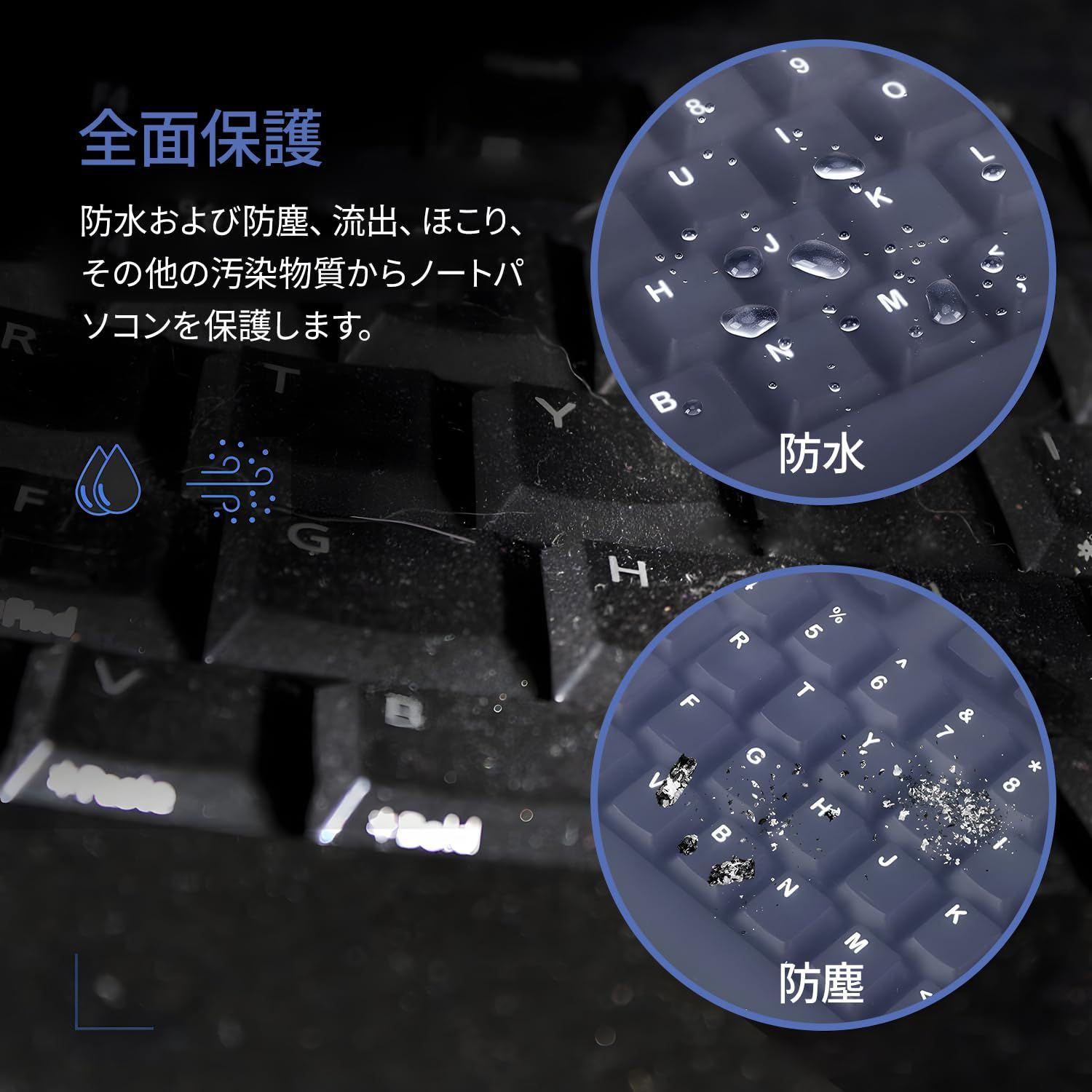 【完全防水 防汚コーティング】液体の侵入を防ぎ、ホコリや食べカスからもキーボードを守ります。コーヒーやジュースなどの液体をこぼしても内部への浸透をブロック。キーボードの劣化を防ぎ、長持ちさせます。