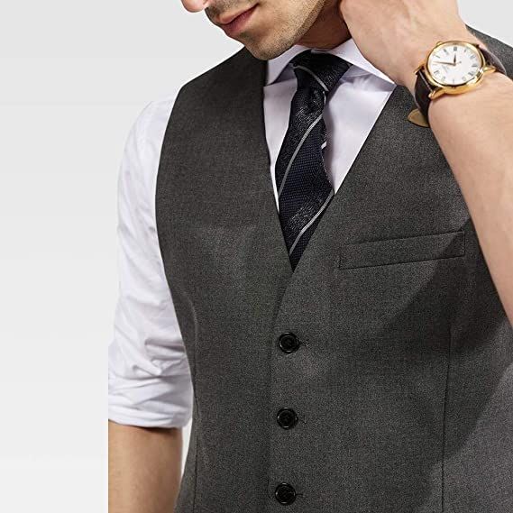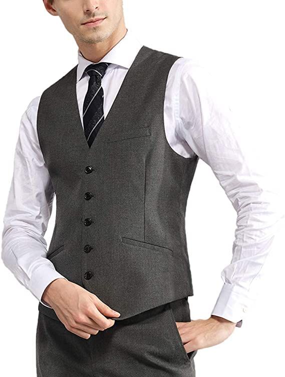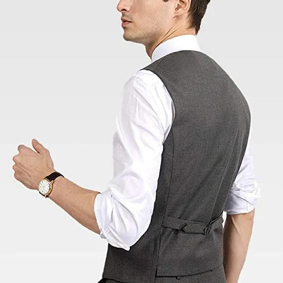 [VYOOU] メンズ スーツベスト ビジネス フォーマル 紳士 スリム チョッキ 大きいサイズ Vネック フィット 尾錠付き 2ポケット クラシック 通勤 定番 結婚式 就活 冠婚葬祭 就職