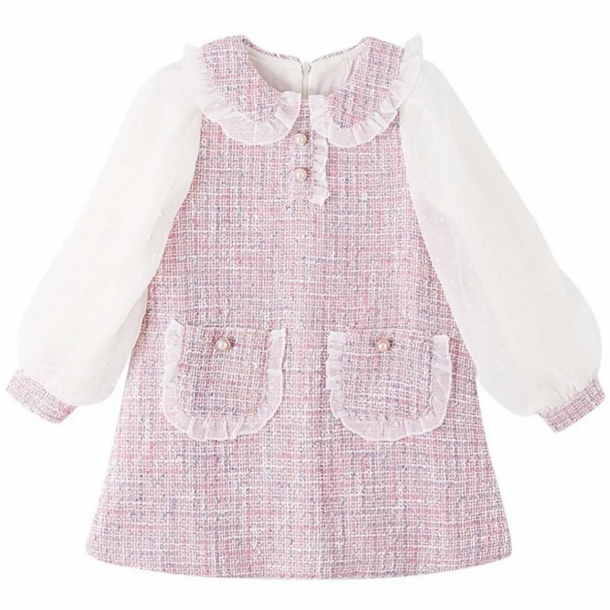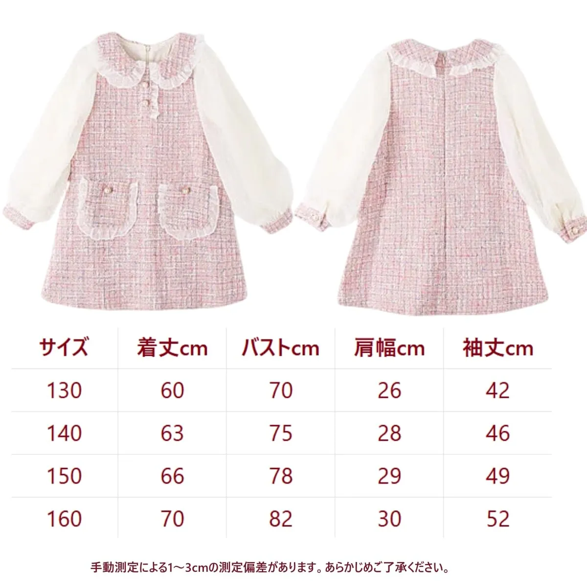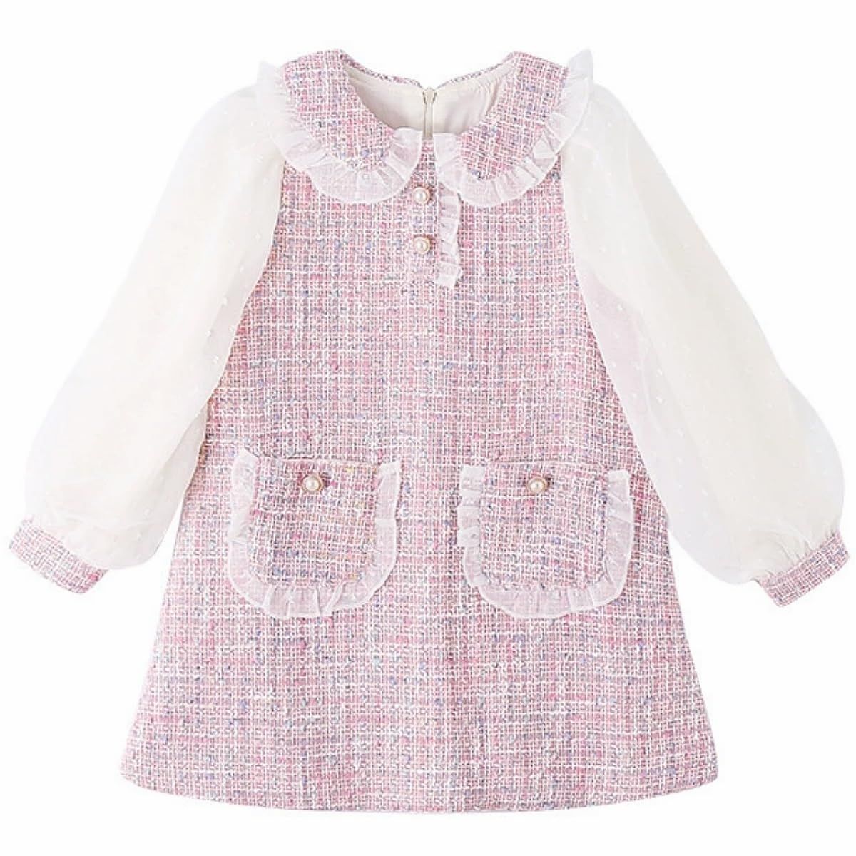 [VNGOLERRY] ガールズワンピース 子供服 女の子 キッズ ドレス スカート ワンピース レース Aライン 長袖 韓国 夏 秋 冬 可愛い フォーマル 七五三 通学 入学式 発表会 結婚式 卒園式 ピンク 130 140 150 160