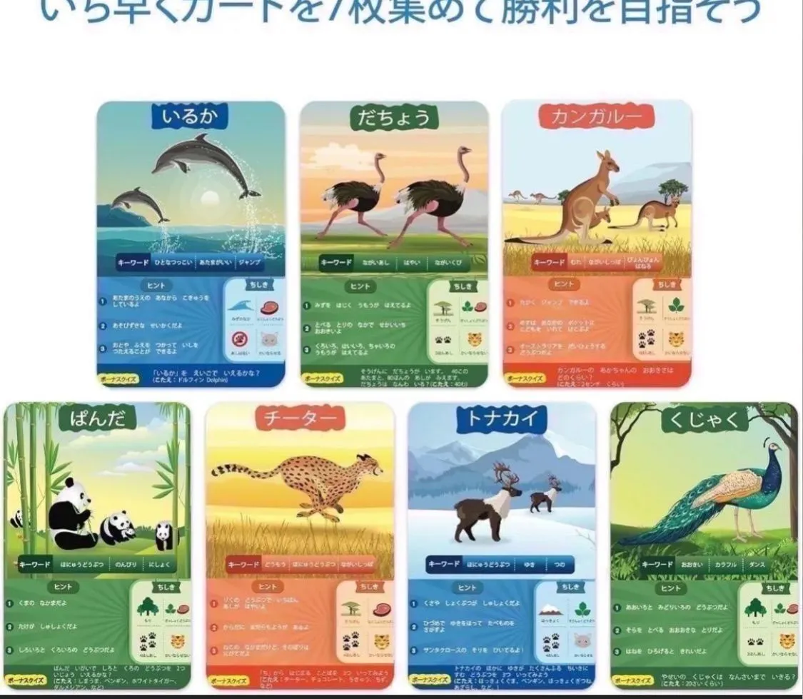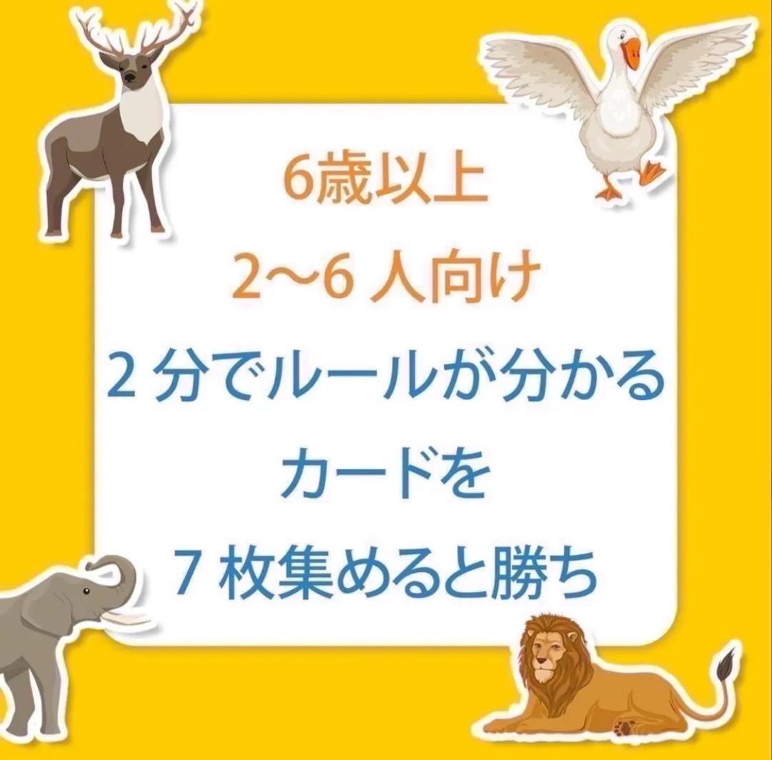 お届けする物は、画像後半の写真に写っているものが全てです。 付属品等は写真でご確認ください。 写っていないものに関しての返品•返金は、ご対応致しかねます。 また、送料削減のため、箱なしで発送する場合があります。 予めご了承ください。 ▪️コンディション▪️ 新品未使用 ▪️商品説明▪️ 質問して頭が良くなるお手軽ゲーム:チームに分かれるか1対1でプレイして、ゲームカードに書かれた動物について、10個まで質問しましょう!その動物は肉食?飼いならせる?群れで暮らしている?よく考えて賢く質問しましょう。最初に7枚のゲームカードを集めた人が勝者になります! 勝つための戦術を考えよう:ヒントカードやボーナスクイズを駆使して、一番先に7枚のゲームカードを集められるよう戦略を練りましょう。 いつでもどこでもプレイ:コンパクトな箱に、ゲームカード50枚とヒントカード6枚がすべて入っており、持ち運び可能で、旅行にも持っていきやすいサイズとなっています。友達と集まった際や、誕生日パーティー、家族で遊ぶ日、車や飛行機での旅行の際や、屋外でも気軽にお子様と一緒に楽しく遊ぶことができます! プレゼントにも最適:小さなお子さんから大人まで、保護者、友人、家族へはもちろん、カードゲームやボードゲーム好きへのプレゼントにも最適です。 家族みんなで楽しめる:6歳からだれでも楽しめて、家族で遊ぶのにも最適な最高にエキサイティングなゲームです。 プレイ人数と平均プレイ時間:動物に関する雑学を学べる、このストラテジーゲームは2~6人でプレイでき、プレイ時間は平均20分程度です。 重要なスキルを育む:『これな~んだ?10』では対象年齢のお子様の、社会コミュニケーションスキル、問題解決力、決断力、創造的思考力を育むことができます。