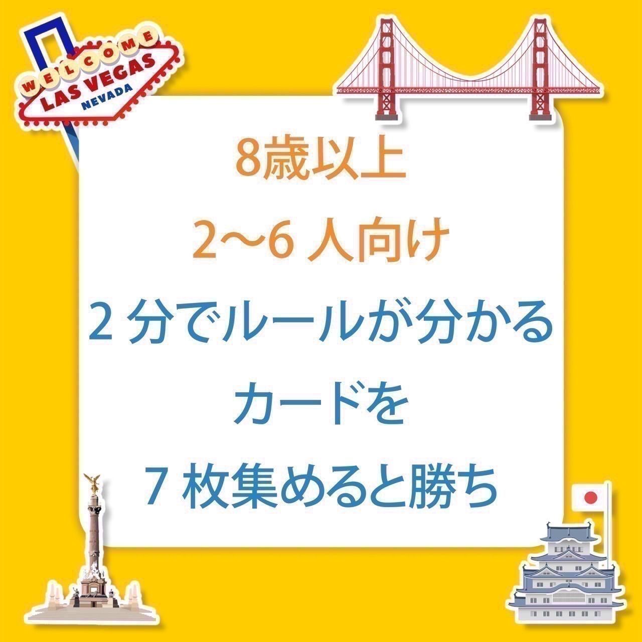 質問ゲーム: ゲーム カードに書かれた国に関する 10 個の質問に回答します。都市はアジアにありますか? 観光地ですか? 国の首都ですか? よく考えて賢く質問し、ヒント カードを賢く使用してください。最初に 7 枚のゲーム カードを集めた人が勝者になります。
