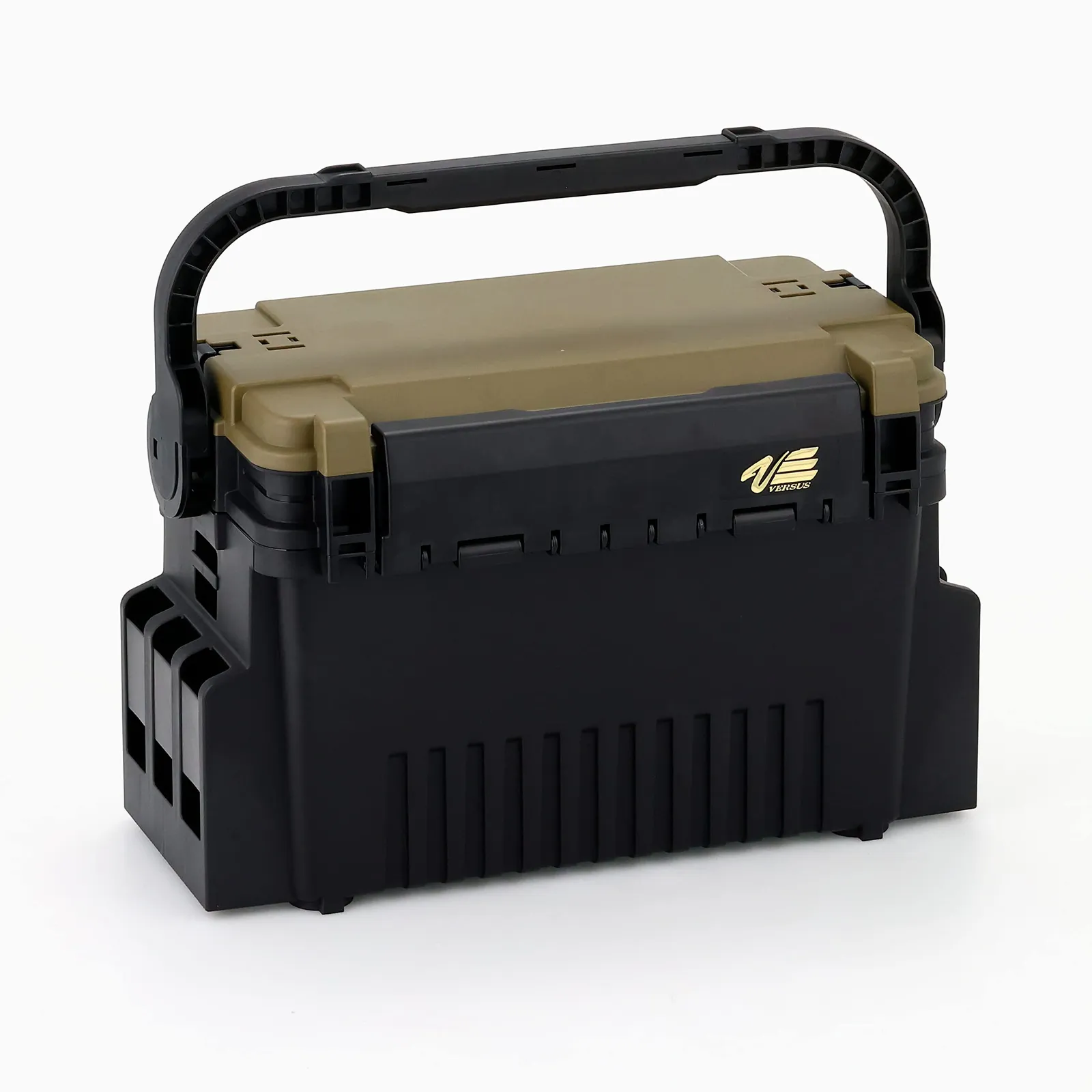 【ランガンシステムBOX Nシリーズ VS-7070N】……ランガンボックスに直接座れて無駄なくシステマチックに収納。自分好みにカスタマイズできる「ランガンBOX」に、バランスを崩さず安心して持ち運ぶことができる「ハンドルストッパー機能」を標準装備した「Nシリーズ」!「VS-7070N」は最も容量・大きさが絶妙。あらゆる釣り場で非常に活躍するど真ん中サイズ! 上段・下段で収納スペースが分かれた設計で「簡易ロックシステム」を搭載。