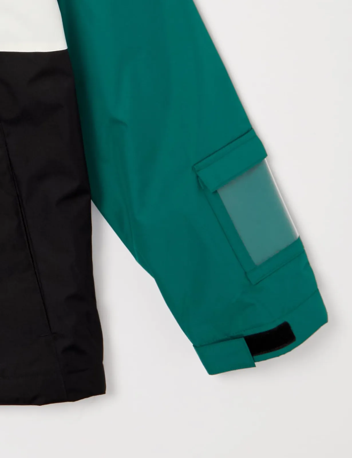 ジャケット、パンツともに面ファスナー付きのポケットが充実。左腕にはチケットの持ち歩きに便利な透明パスケースが付いています。