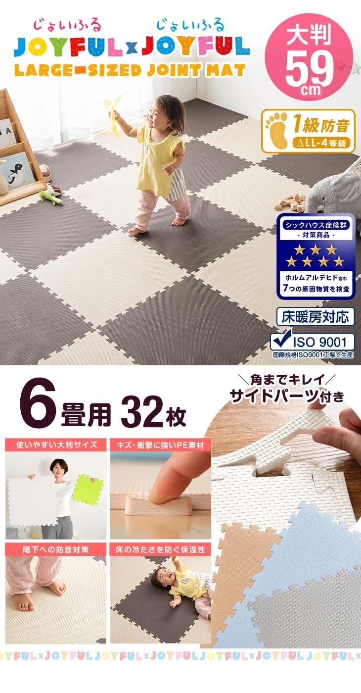 タンスのゲン ジョイントマット 1級防音 大判59cm 厚み10mm 6畳用 32枚組 防音 保温性 床暖房対応 ノンホルムアルデヒド 赤ちゃん プレイマット フロアマット サイドパーツ付き オフホワイト 18700001 36 (79292)