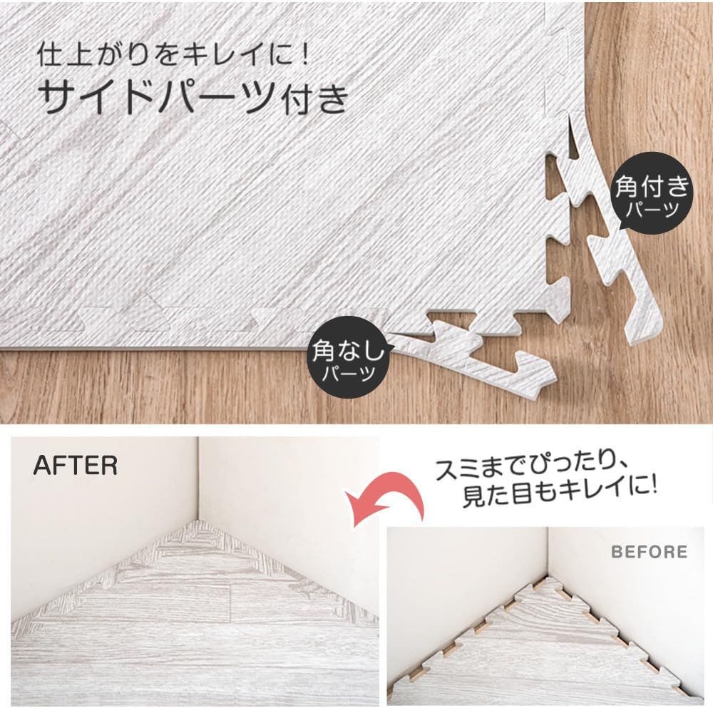 【セット内容】 6畳用:ジョイントマット32枚、サイドパーツ (角付きパーツ32本、角なしパーツ32本)