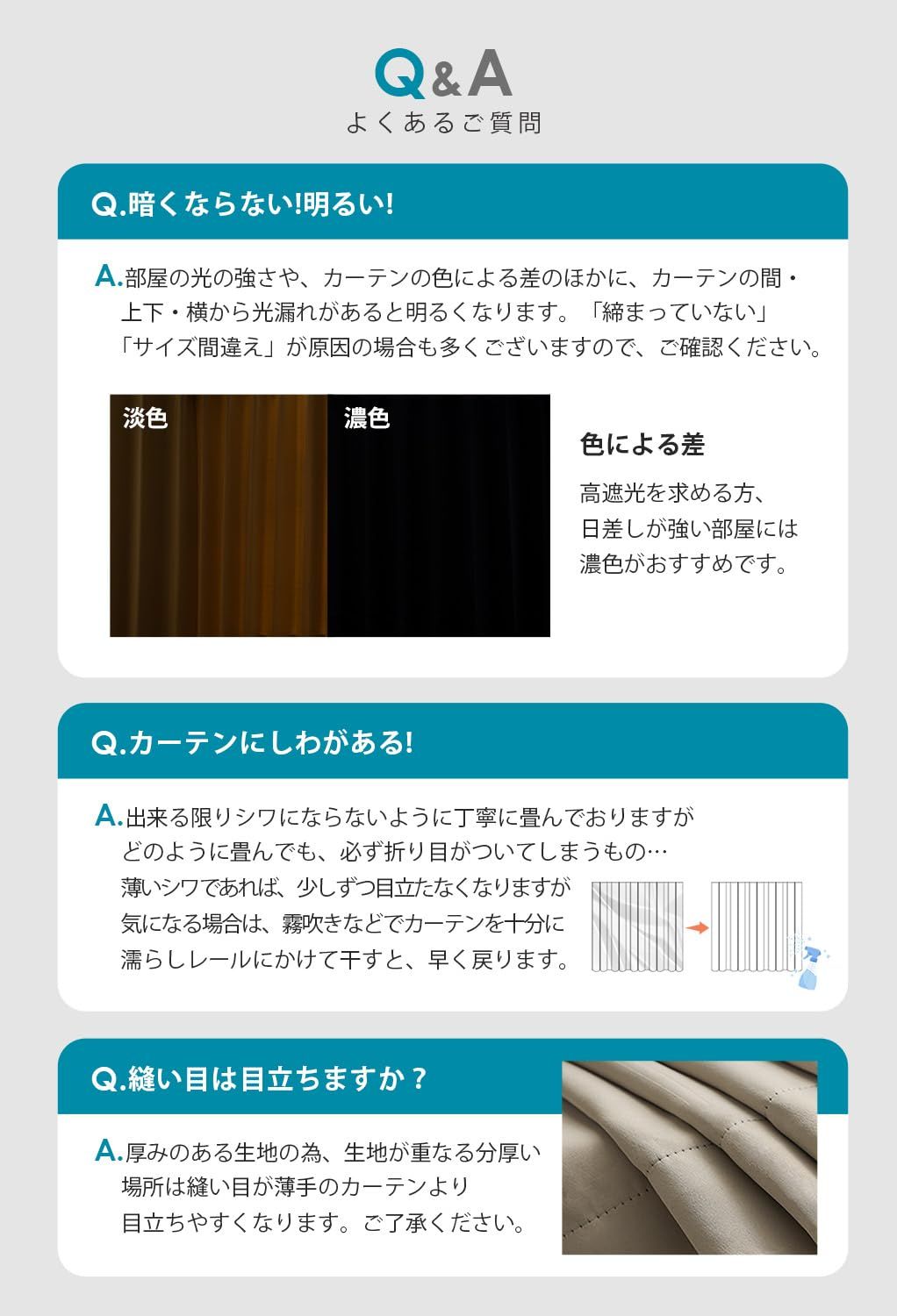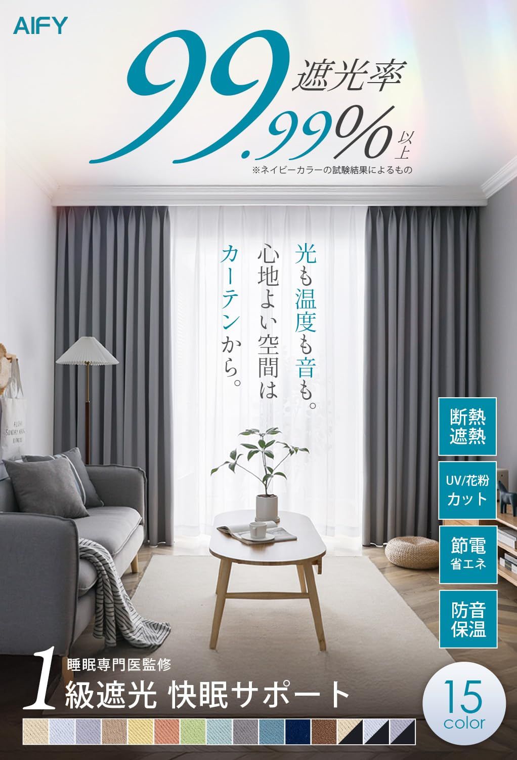 【99.9%以上遮光】迷ったらこれ!シンプル&機能性重視の方におすすめです。この4枚セット(99.9%以上遮光ドレープカーテン2枚,レースカーテン2枚)を選択する理由:①光沢を抑えたマットな質感が美しい。②黒ずみの少ないなめらかな生地。③快適に過ごせる優れた性能。遮光率99.9%以上、日差しの強い窓でもしっかりと遮光できるので、光をできる限りシャットアウトしたい方におすすめです。