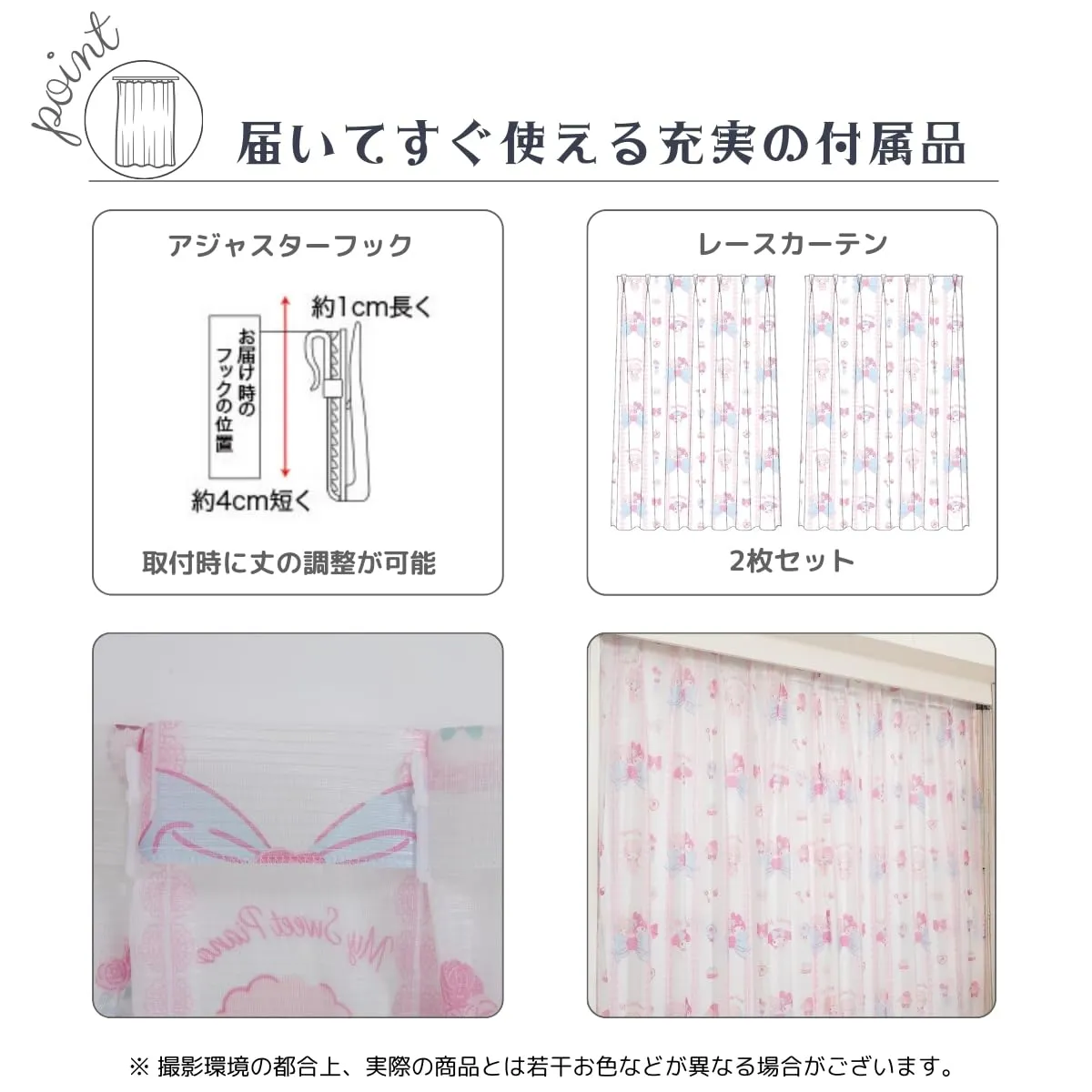 サンリオ(SANRIO) マイメロディ&マイスウィートピアノ UVカット 外から見えにくい レースカーテン 幅100×198cm丈 2枚セット サンリオ SANRIO マイメロ 丸洗い可 キャラクター SB-675-S