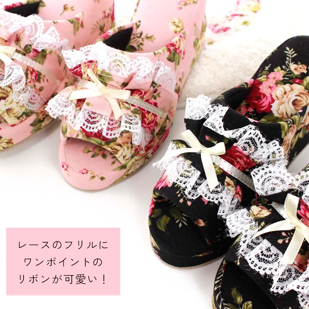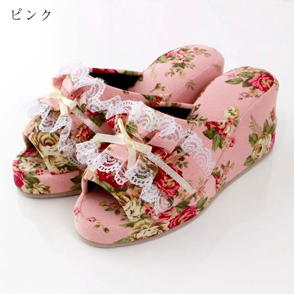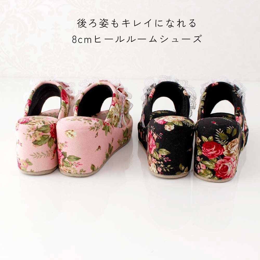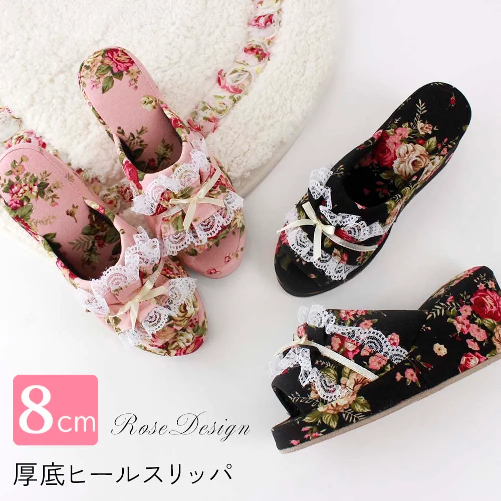 ヒールスリッパ 8cm 厚底 ローズ 薔薇 スリッパ