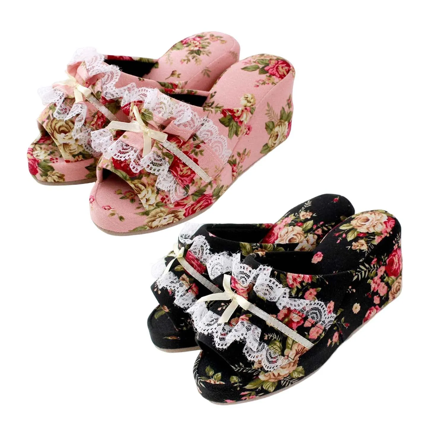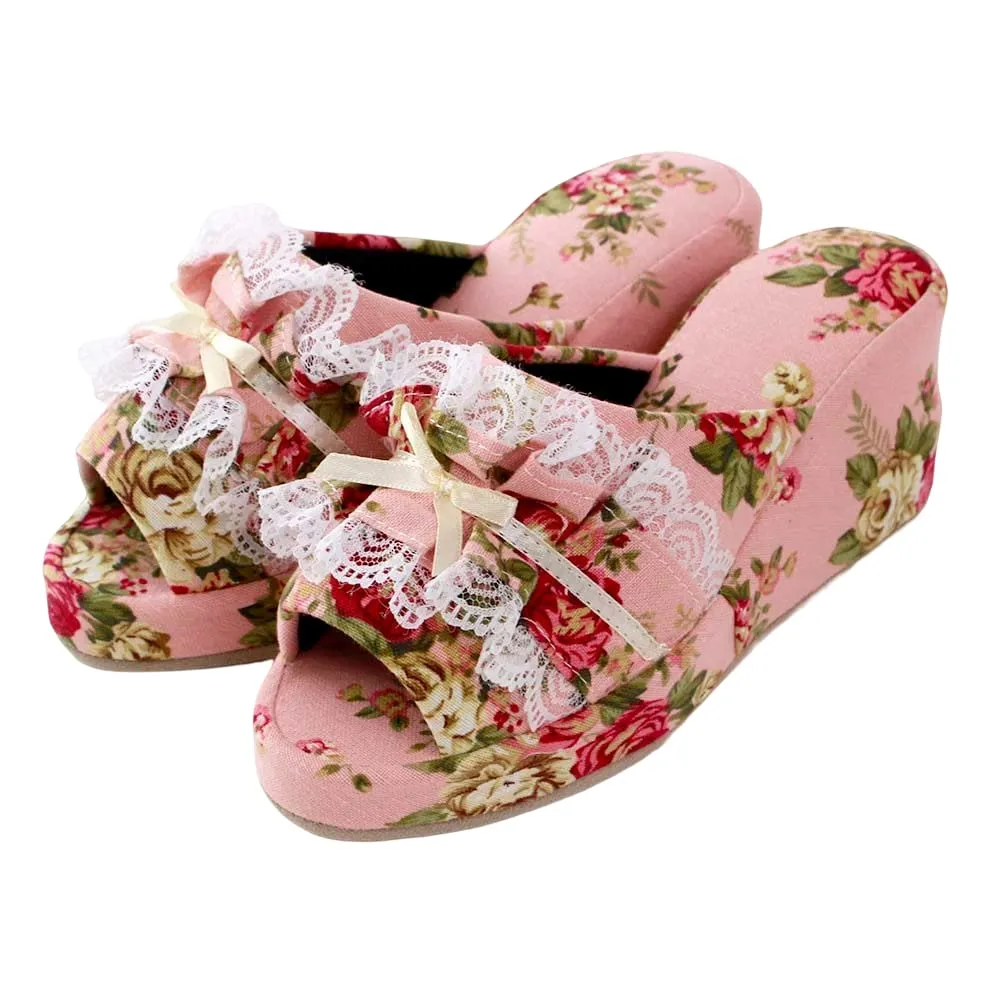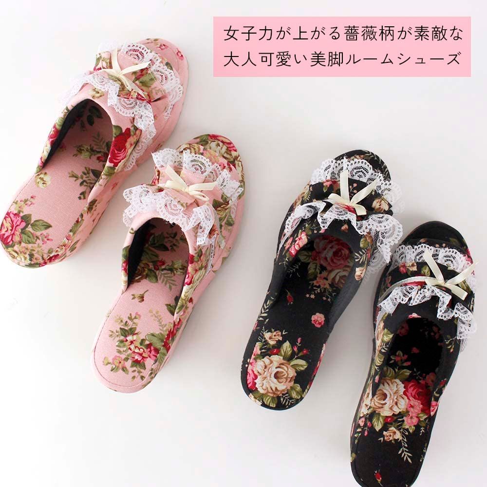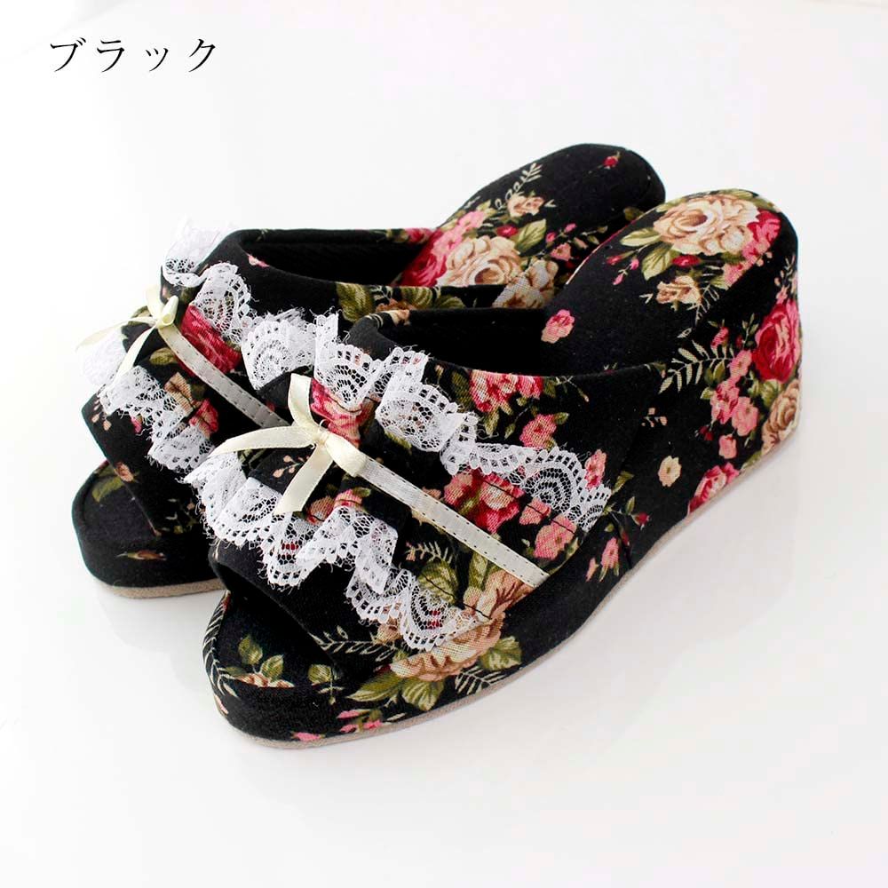 ヒールスリッパ 8cm 厚底 ローズ 薔薇 スリッパ
