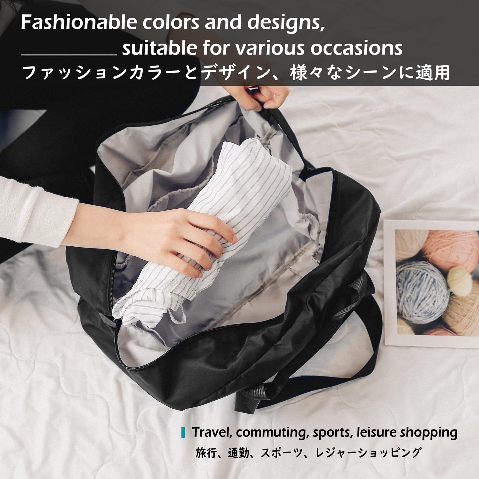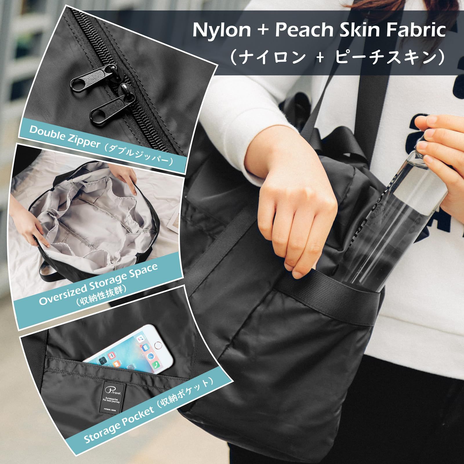 【軽量&大容量】約300gの超軽量設計で、2?3泊分の荷物を収納可能。メイン収納+スマホ/水筒対応ポケットで整理整頓が楽々。機内持ち込みやLCC利用時にも便利で、旅行バッグに最適