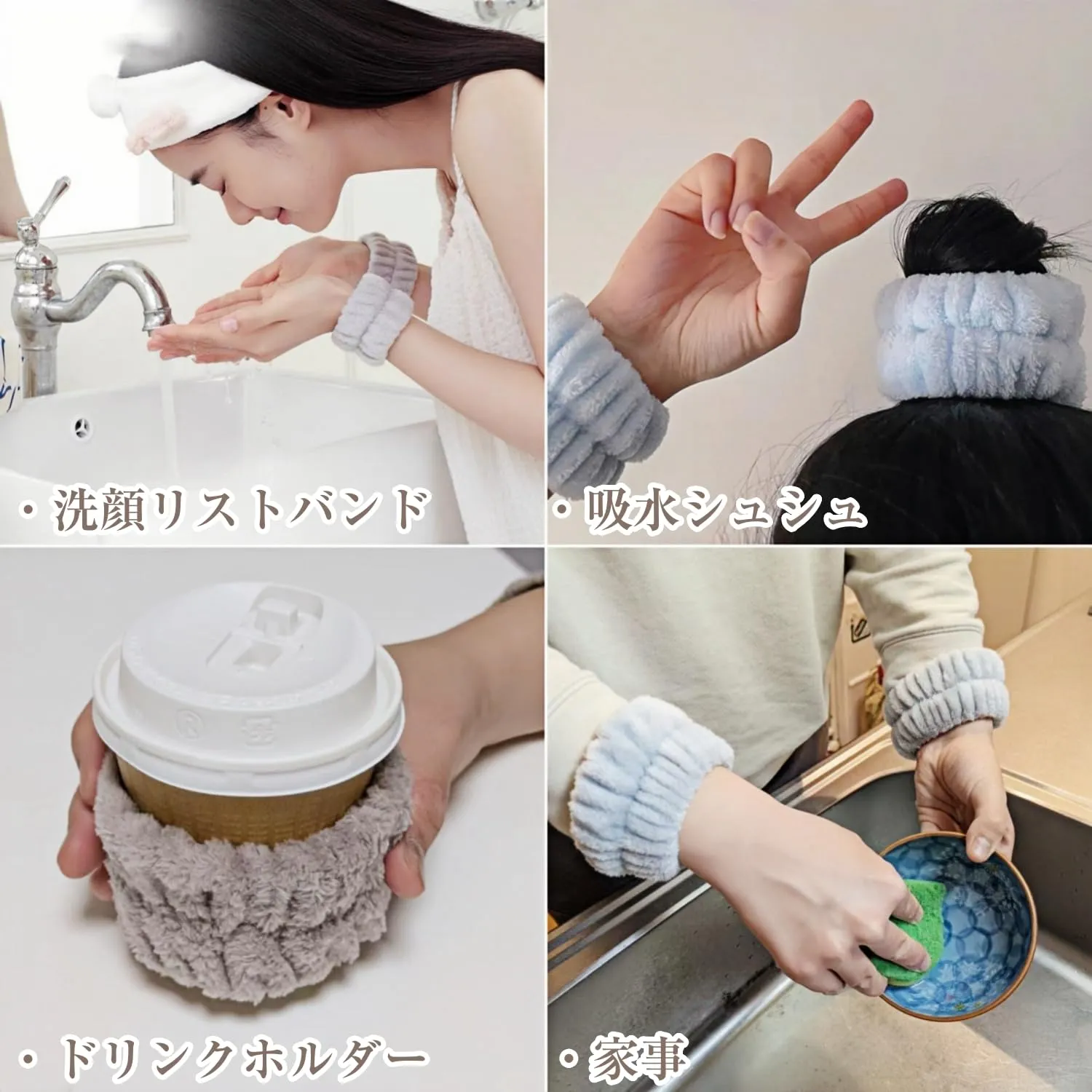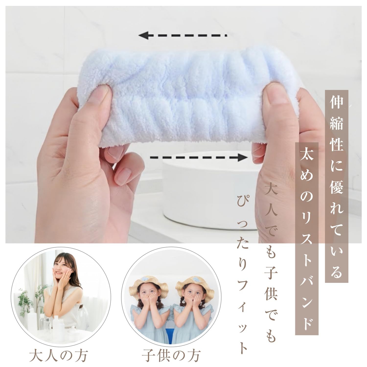 洗顔 リストバンド 吸水 洗顔用リストバンド アームバンド 手首バンド アームバンド 袖 バンド 液体飛散 袖濡れ防止 水濡れ防止 吸水性良い ふわふわ 柔らかい かわいい 肌触りが良い 伸縮性あり 超吸水 多機能 子供 家事 男女兼用
