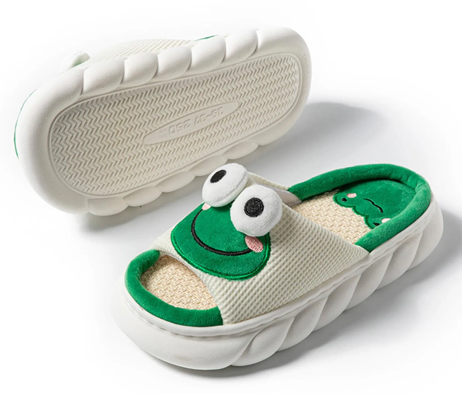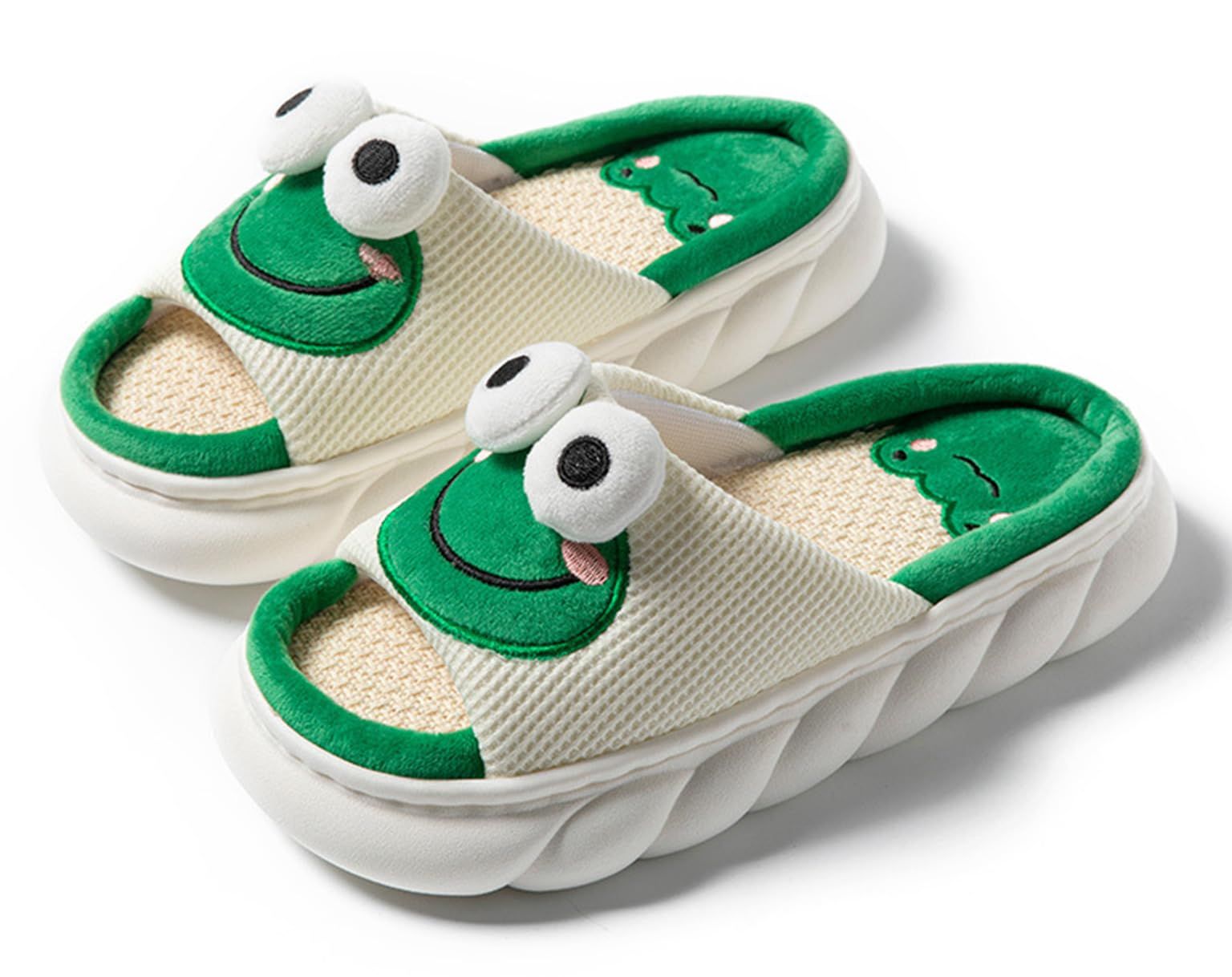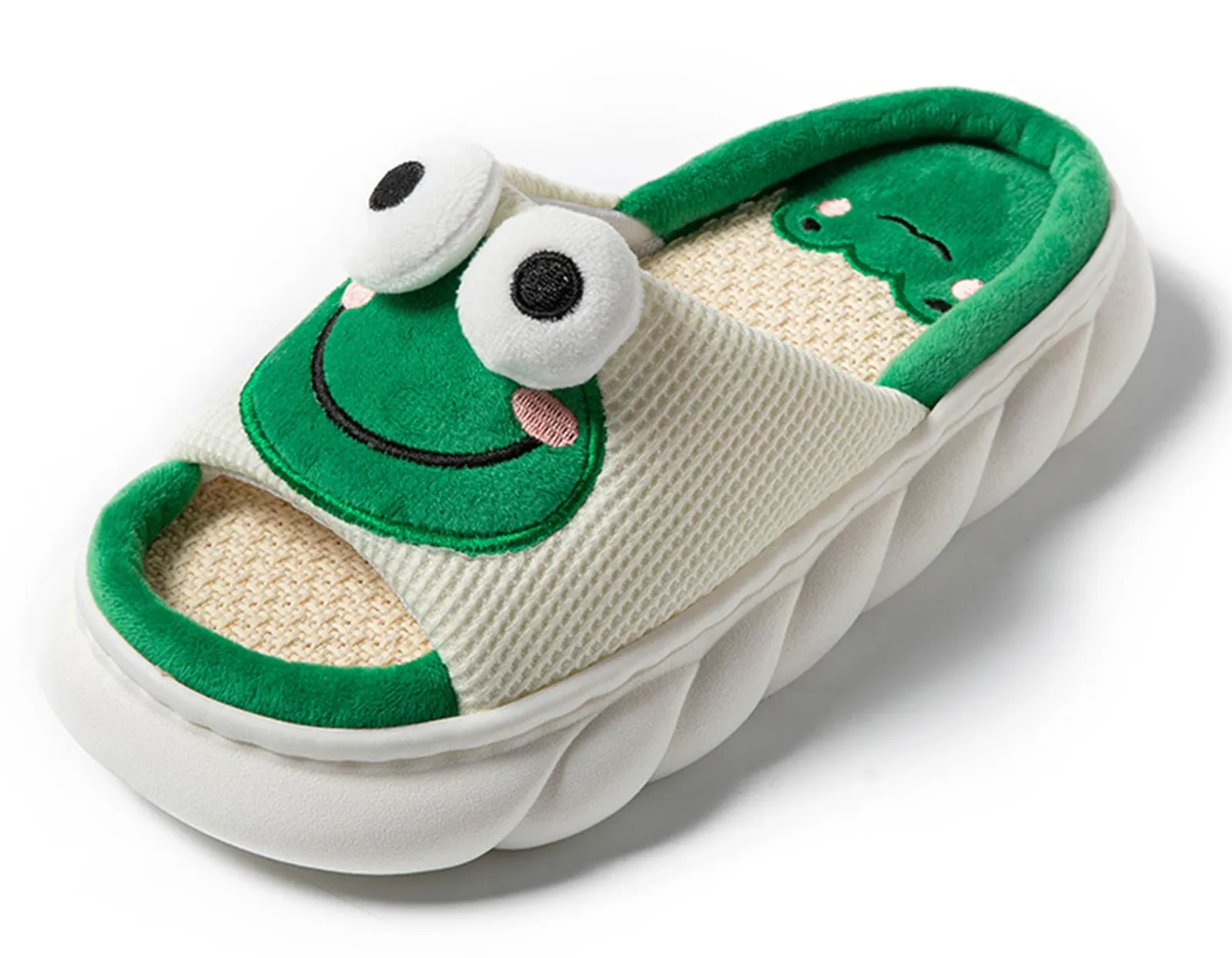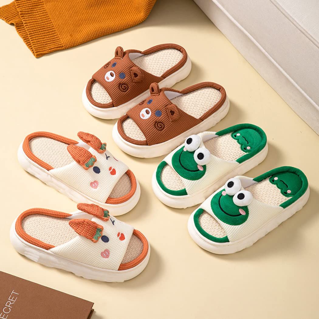 [SHPEROWW] レディース ルームシューズ 可愛い カエル匹 厚底 スリッパ 麻 室内履き 春夏秋 滑り止め 来客用 部屋用 ギフト