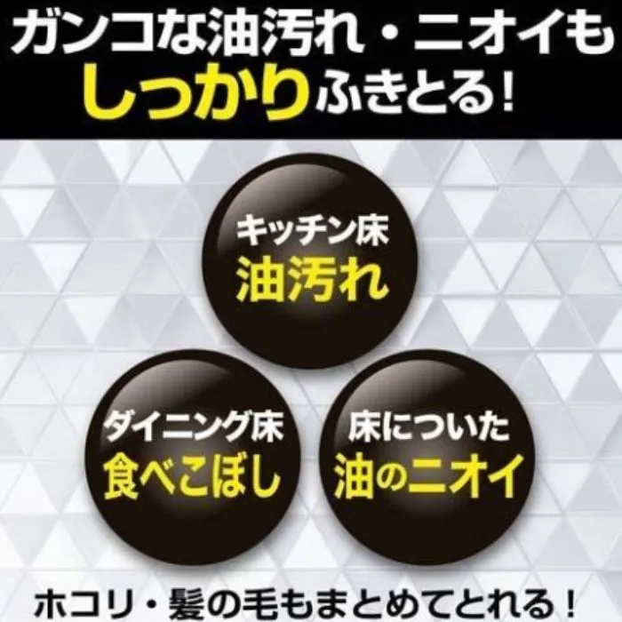 ベタベタ汚れに強い洗浄液採用し、フロア用クイックル史上最強のふき取り力※1。