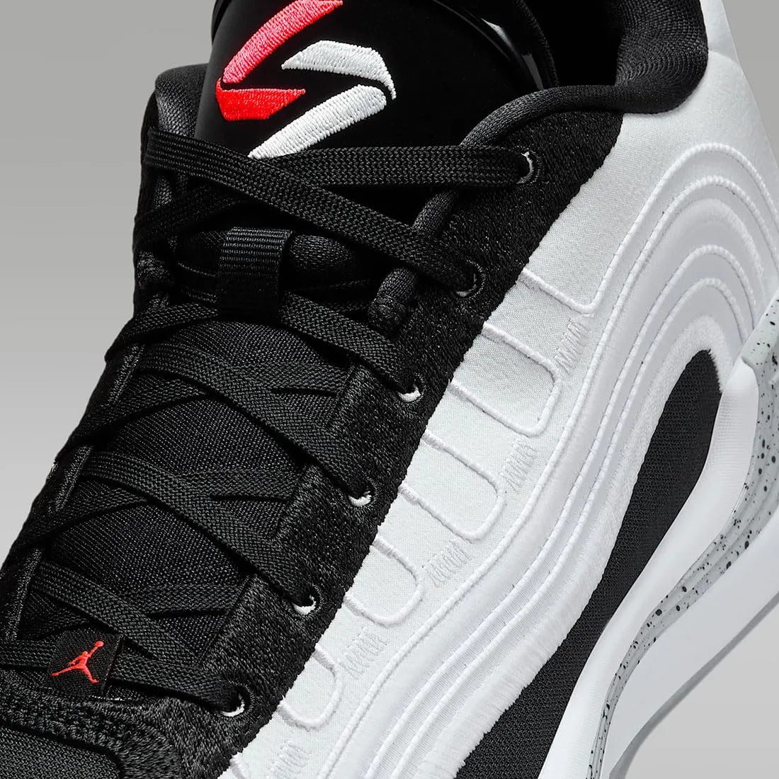 4のデザインのコアは、Jordanの伝統。 クラシックなホワイトとブラックに斑点模様のグレーセメントを組み合わせ、アイコニックなスタイルを演出します。