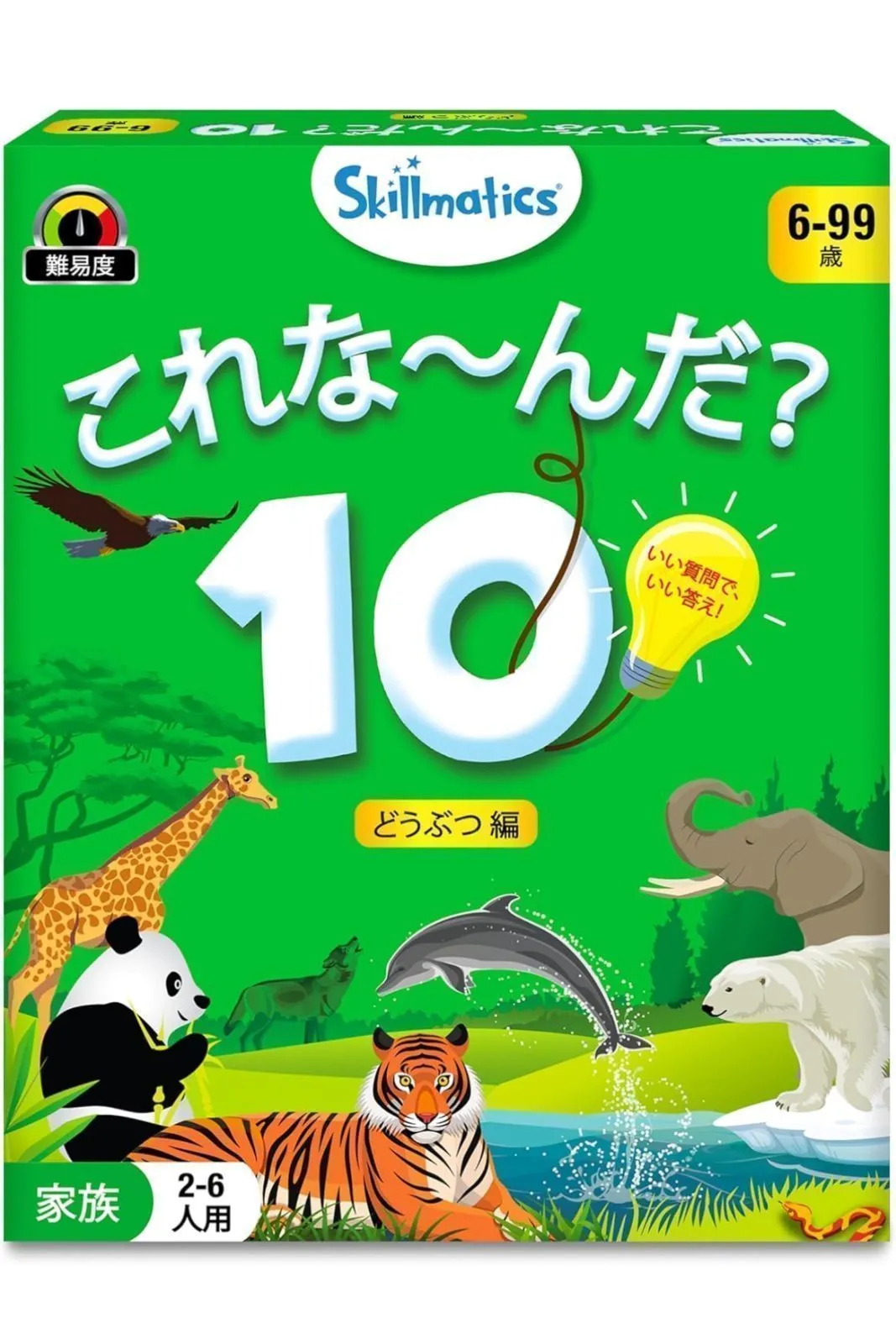 質問して頭が良くなるお手軽ゲーム:チームに分かれるか1対1でプレイして、ゲームカードに書かれた動物について、10個まで質問しましょう!その動物は肉食?飼いならせる?群れで暮らしている?よく考えて賢く質問しましょう。最初に7枚のゲームカードを集めた人が勝者になります!