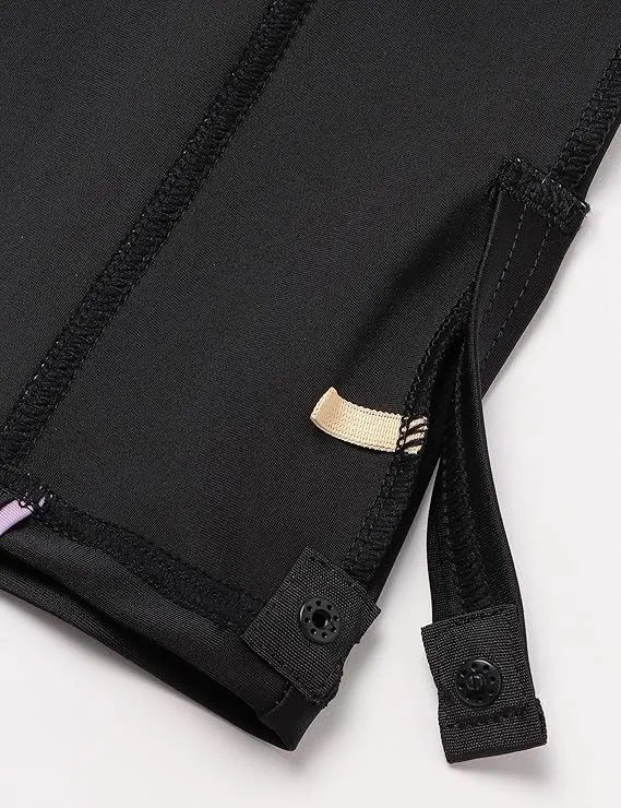 上下セパレートタイプで着替えやすく、トップスをボトムスをつなぐテープとスナップボタンで、水中でもトップスが上がってきません。