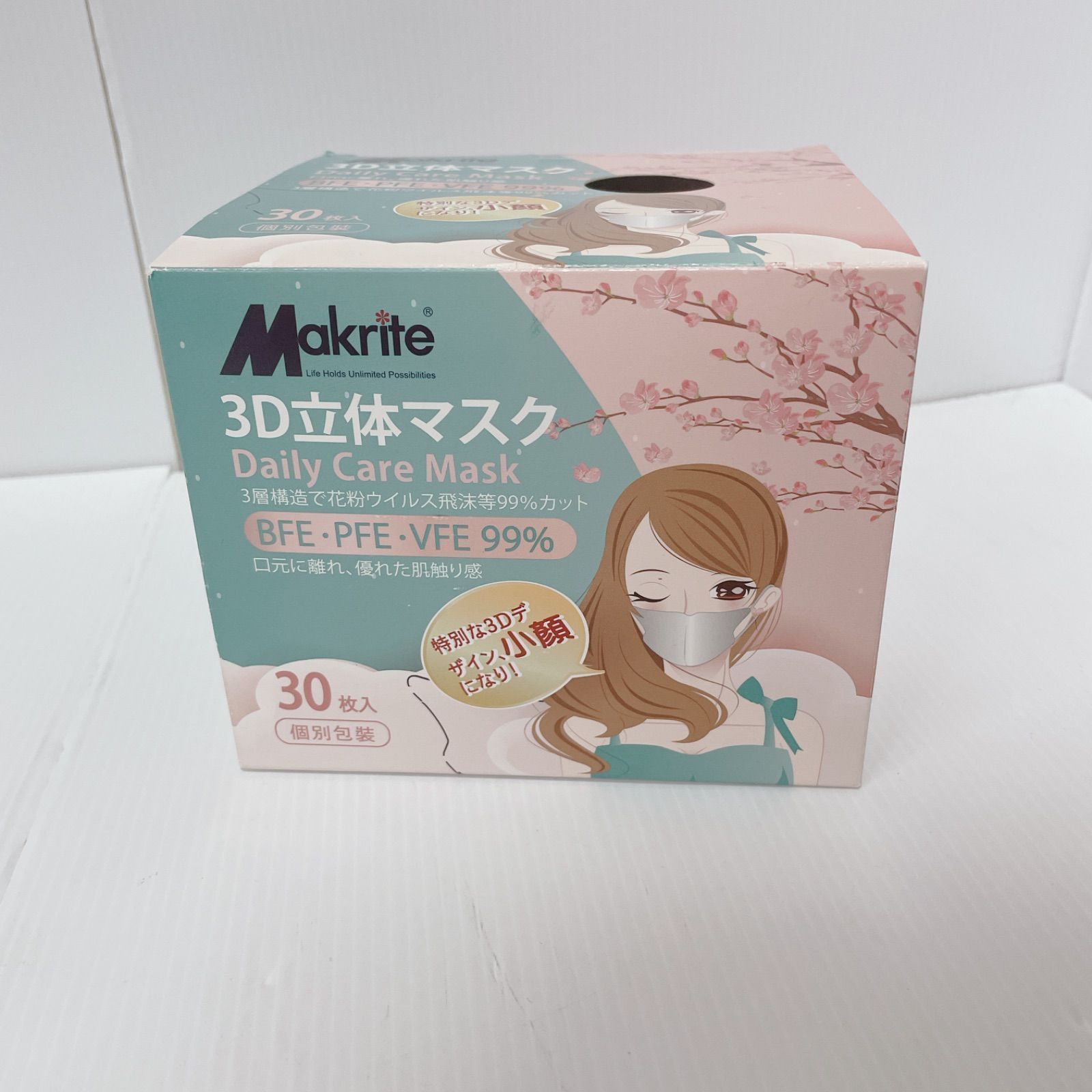 【LE51】[Makrite] 3D 立体 小顔 マスク 使い捨て 3層構造 - ウイルス飛沫 花粉 PM2.5 ハウスダスト 対策 呼吸しやすい 個包装 30枚箱入