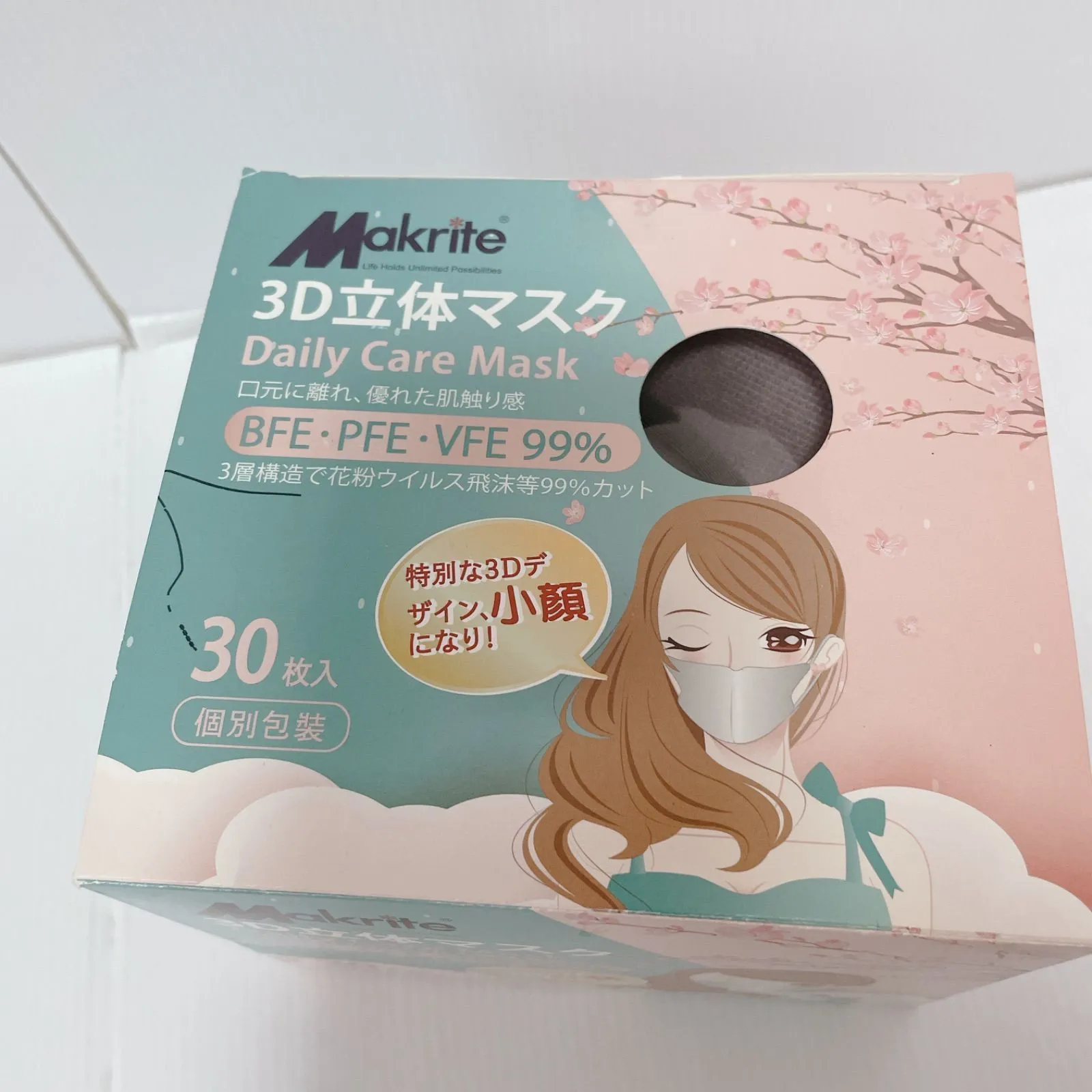 お届けする物は、画像後半の写真に写っているものが全てです。 付属品等は写真でご確認ください。 写っていないものに関しての返品•返金は、ご対応致しかねます。 また、送料削減のため、箱なしで発送する場合があります。 予めご了承ください。 ▪️コンディション▪️ 新品未使用 ▪️商品説明▪️ [Makrite] 3D 立体 小顔 マスク | 使い捨て 3層構造 - ウイルス飛沫 花粉 PM2.5 ハウスダスト 対策 呼吸しやすい 個包装 30枚箱入