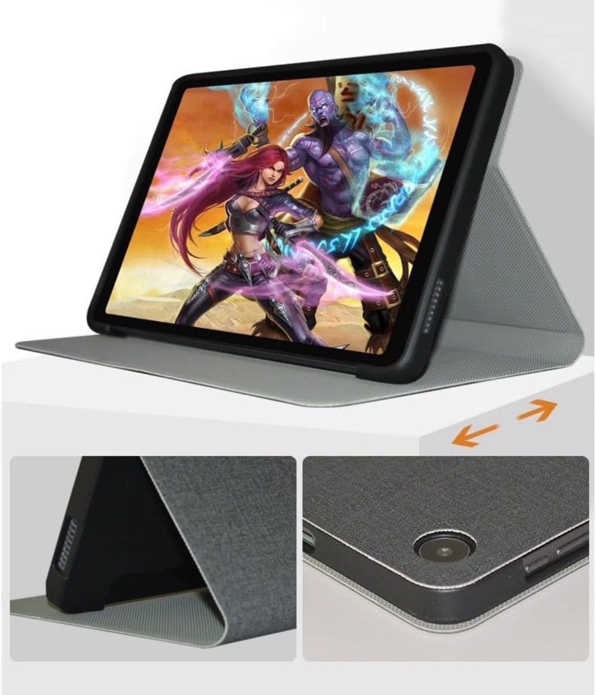 【スタンド機能】フロントカバーを折り曲げて簡単にスタンドの形にすることができ、必要に応じてタイピングや動画鑑賞などに適した角度を調整し、両手を解放して簡単に動画を鑑賞することができます。仕事やゲームなどもより快適に行うことができます。