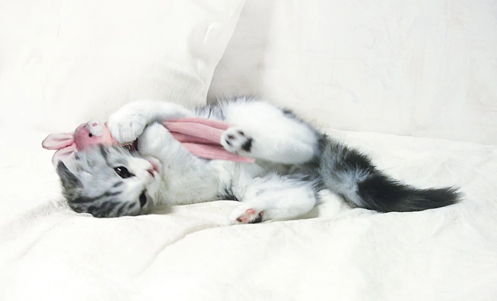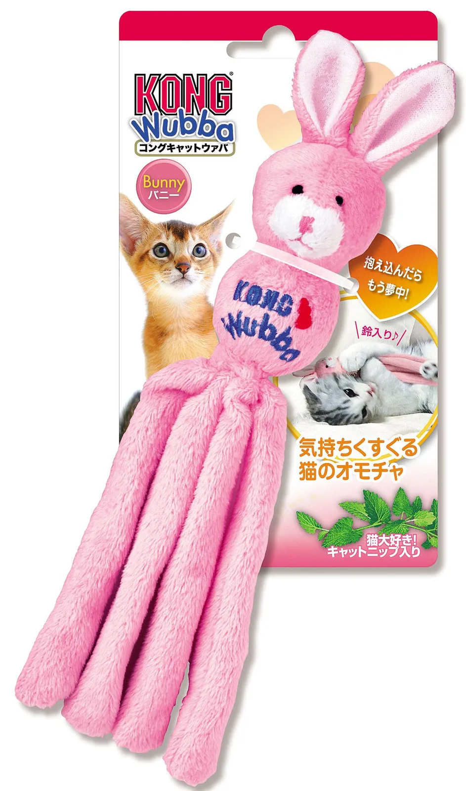 雪だるまみたいなボディに4本足がついたユニークな形状のかわいい猫オモチャ。うさぎさんの顔が付いたマスコットタイプ。くわえて運んだり、レスリングしやすい大きさです。肌ざわりのいい布でくるまれ、縫製してあるので誤食の心配が少なく安心。猫が好きなキャットニップが入った足は、押さえるとカサカサ音がします。ボディ下側にプラスチック鈴入り。