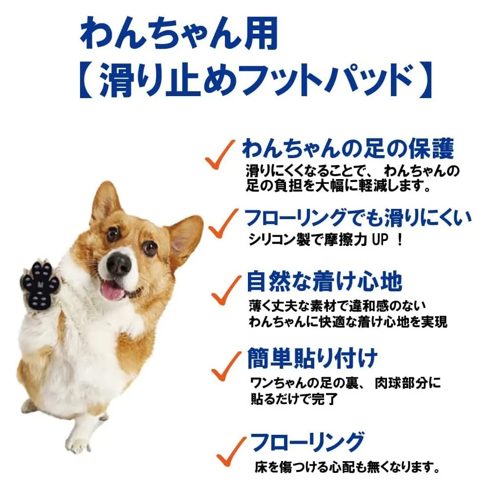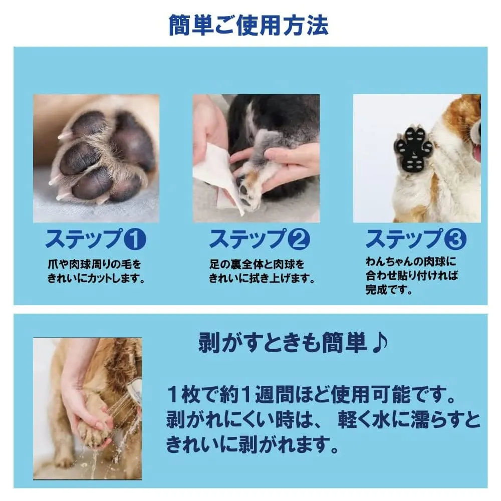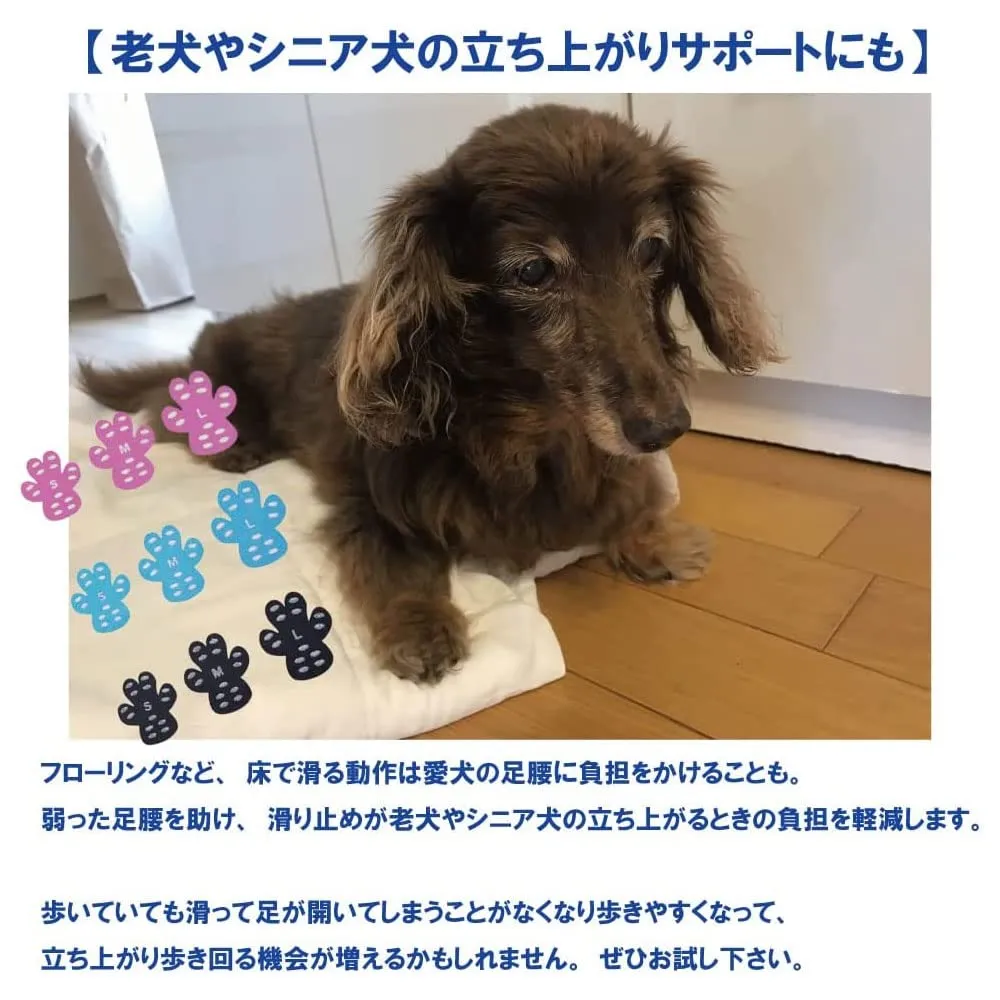 わんちゃんの足裏にはるだけで、底部のシリコンパッドが足の滑りを防ぎます。 足腰を弱まったワンちゃんや、老犬にもピッタリです。