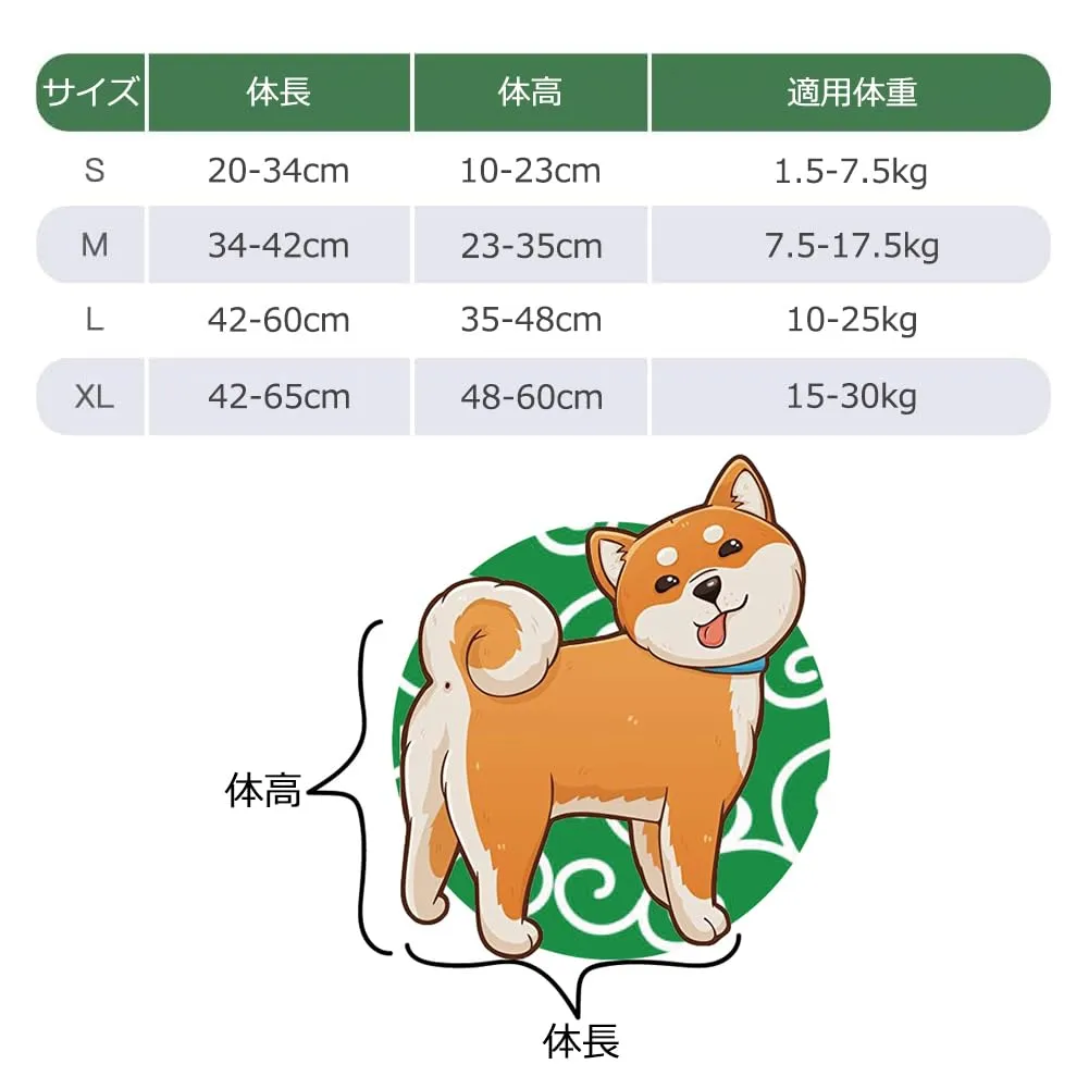 【サイズ】S:体長20-34cm、体高10-23cm、1.5-7.5kgのペットに適用。M:体長34-42cm、体高23-35cm、7.5-17.5kgのペットに適用。L:体長42-60cm、体高35-48cm、10-25kgのペットに適用。XL:体長42-65cm、体高48-60cm、15-30kgのペットに適用。