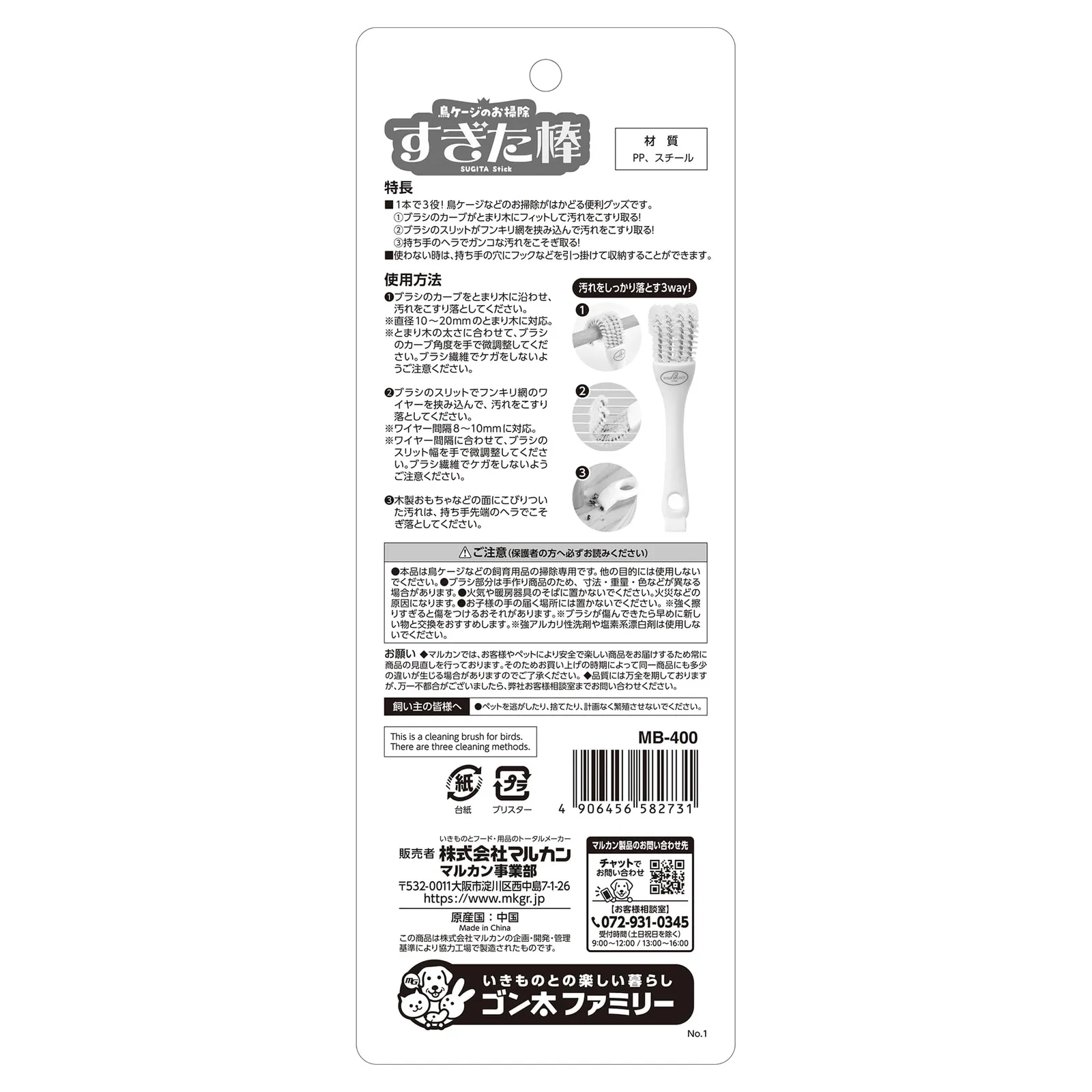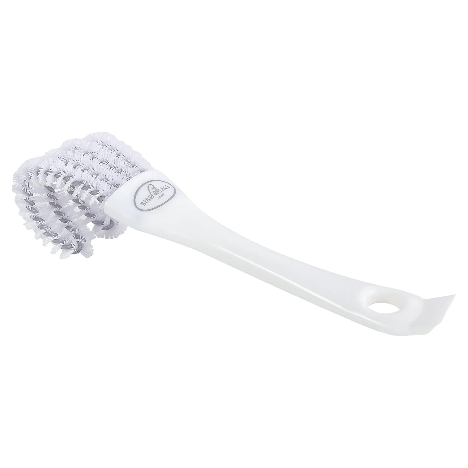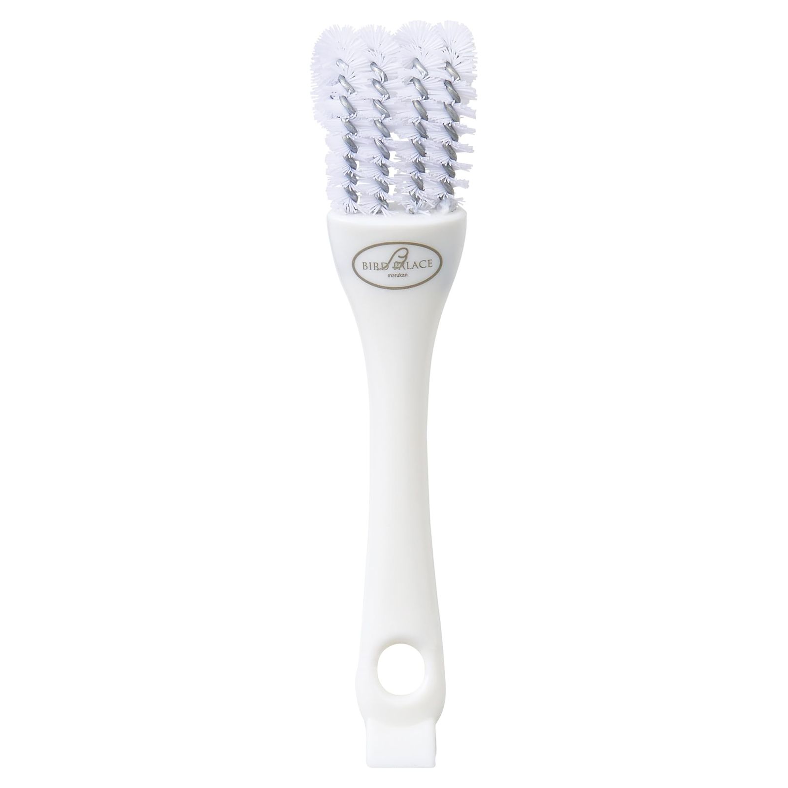■1本で3役!鳥ケージなどのお掃除がはかどる便利グッズです。①ブラシのカーブがとまり木にフィットして汚れをこすり取る!②ブラシのスリットがフンキリ網を挟み込んで汚れをこすり取る!③持ち手のヘラでガンコな汚れをこそぎ取る!