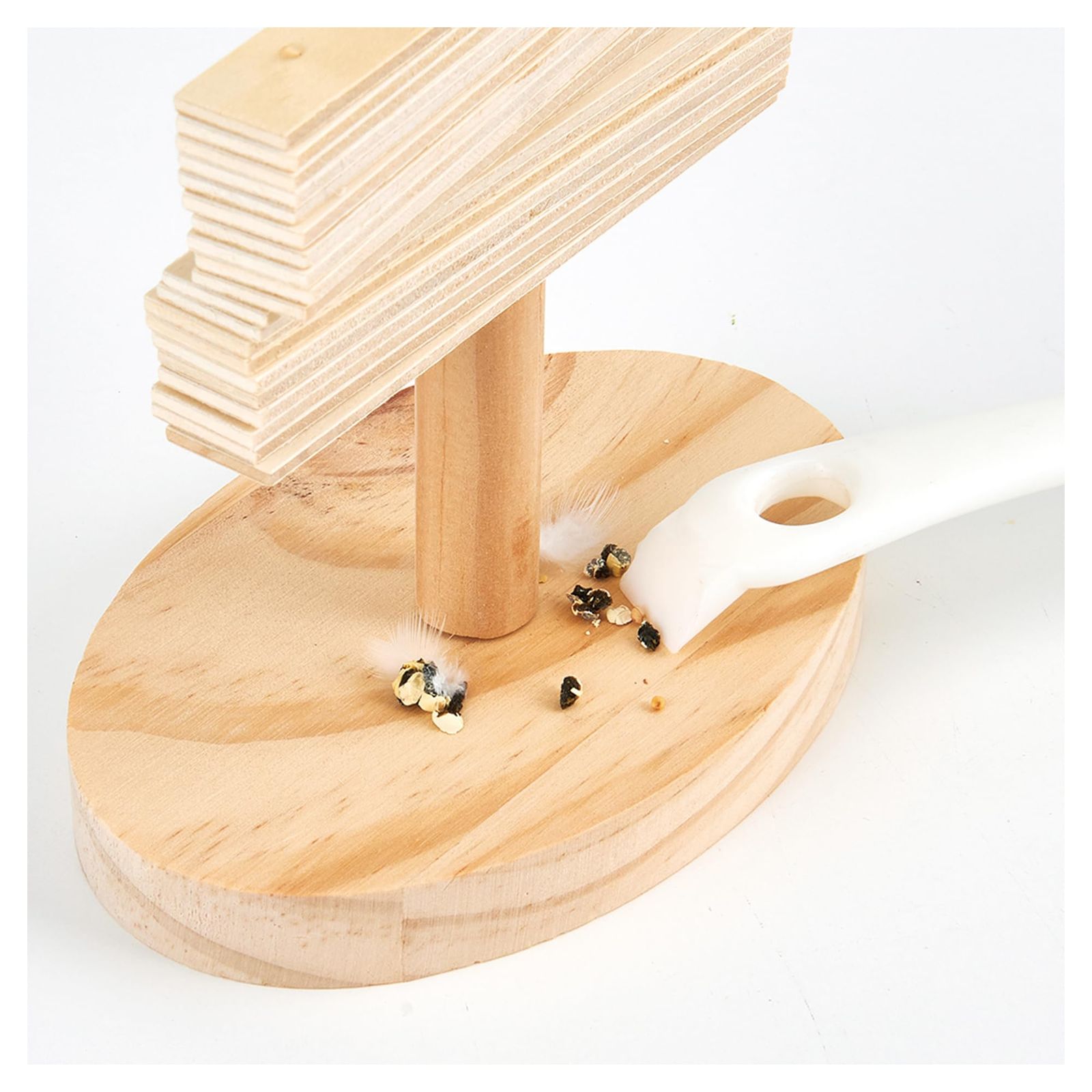 ●木製おもちゃなどの面にこびりついた汚れは、持ち手先端のヘラでこそぎ落としてください。