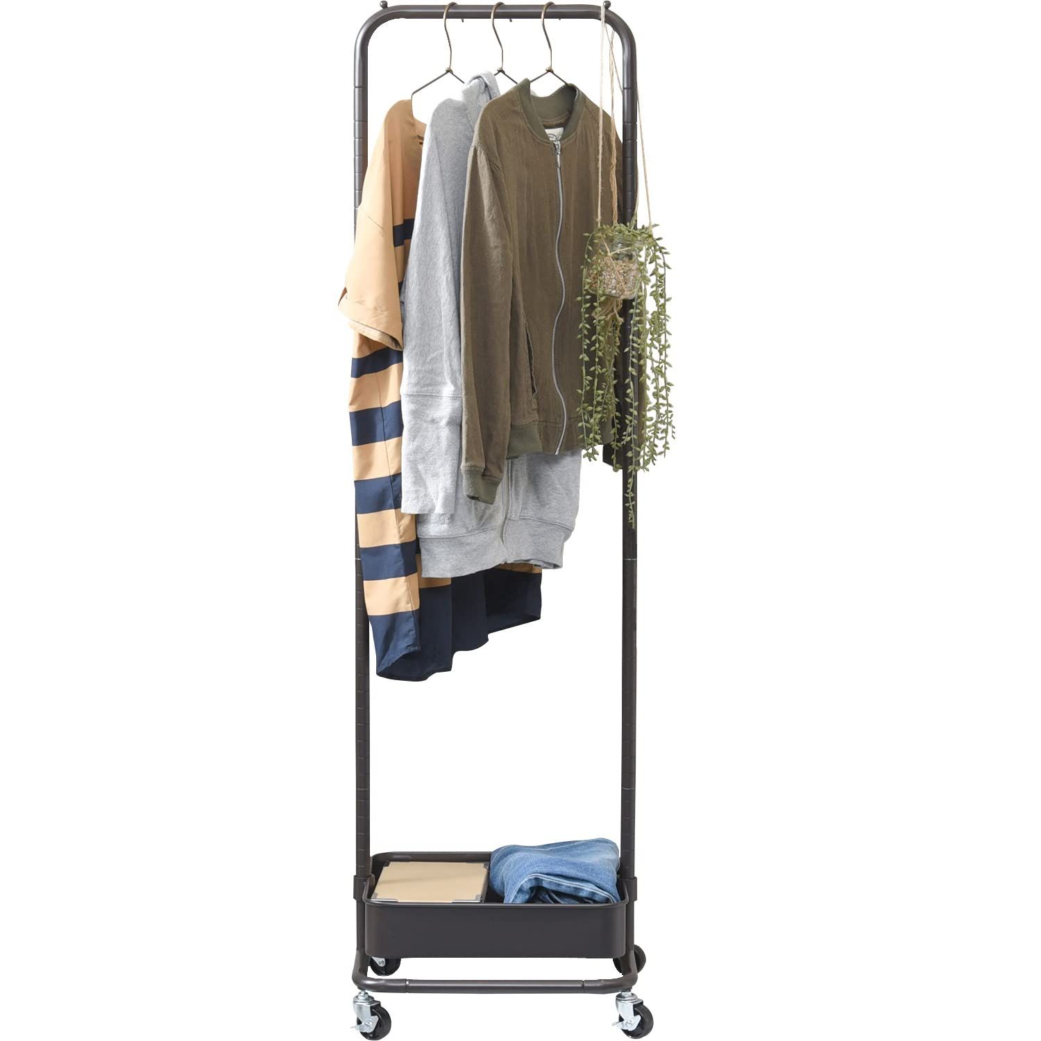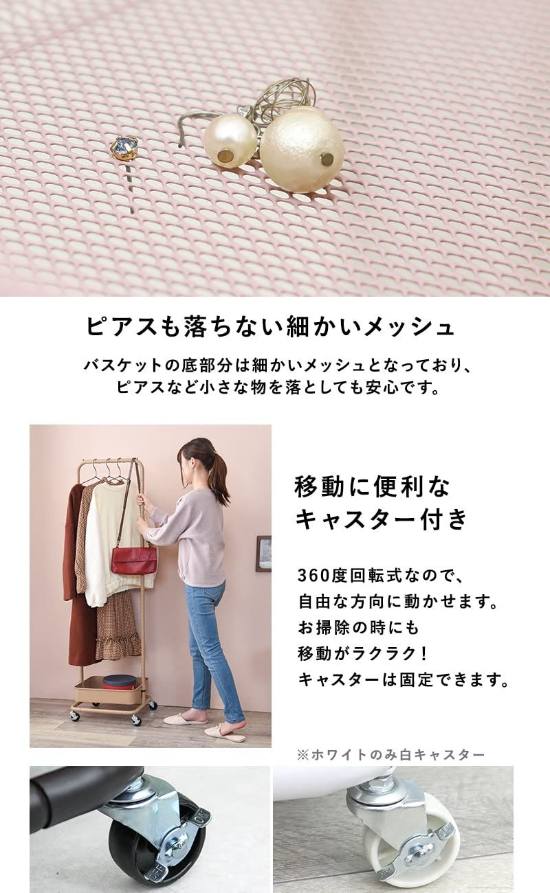 高さが変えられる。バスケット付きハンガーラック