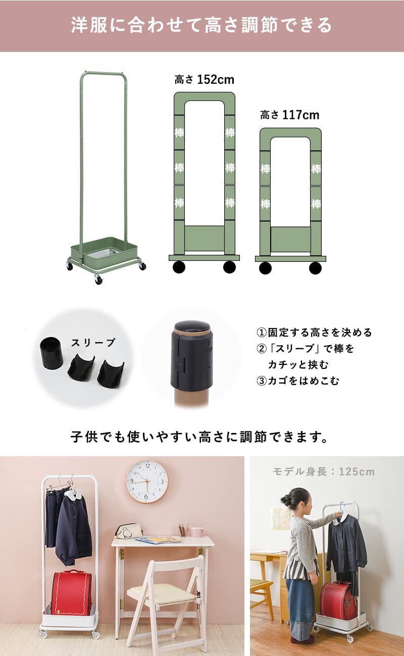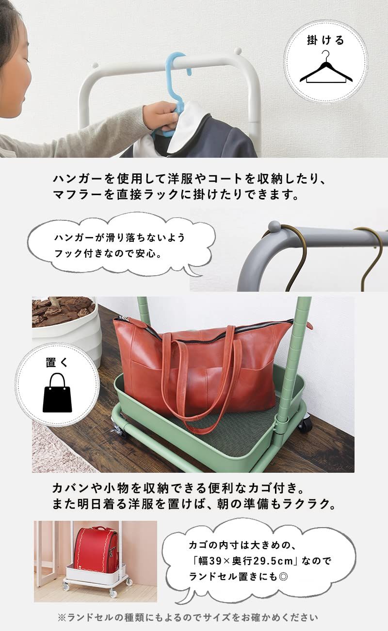 お子様でも使いやすい高さに調整できるので、制服やランドセルの収納にもぴったり。
