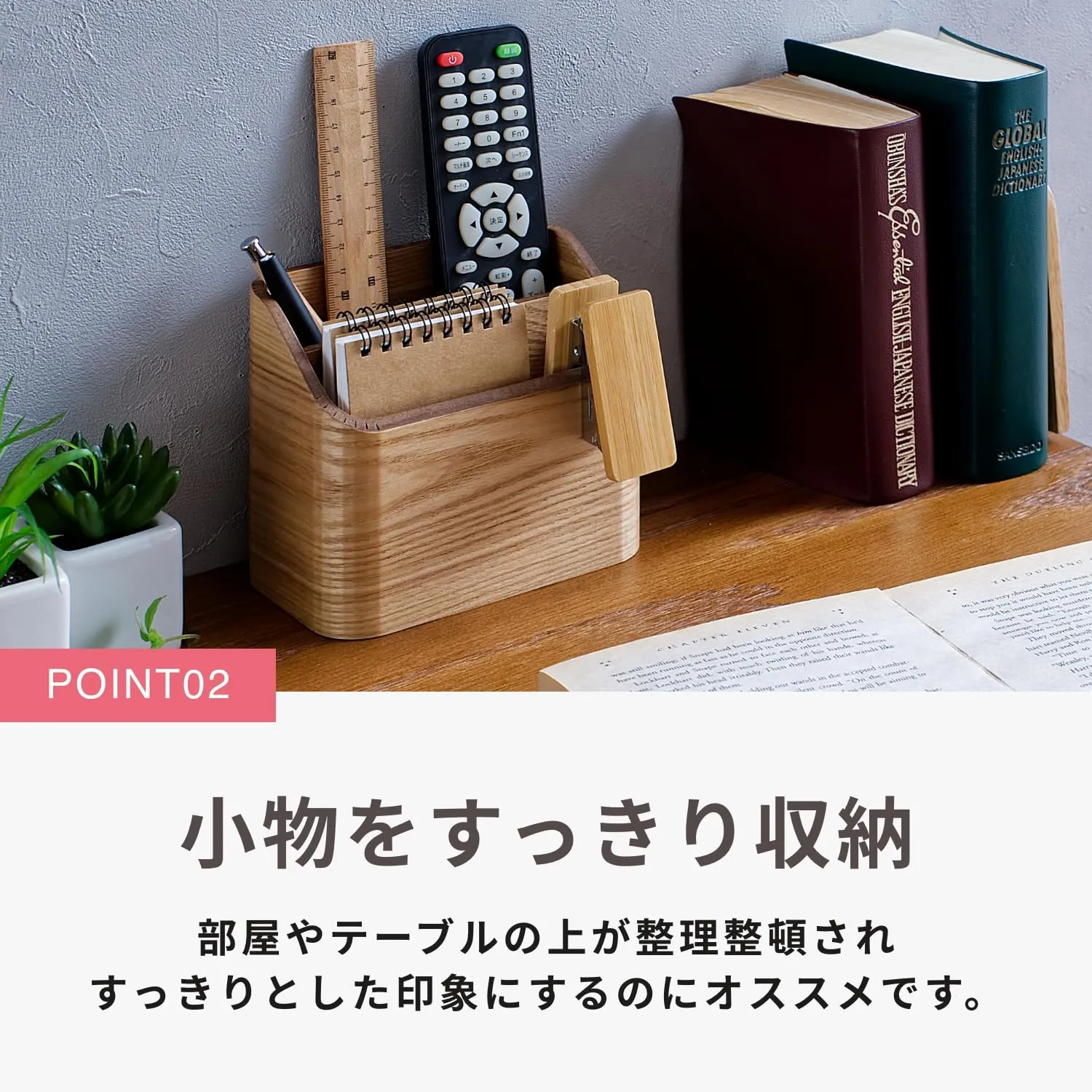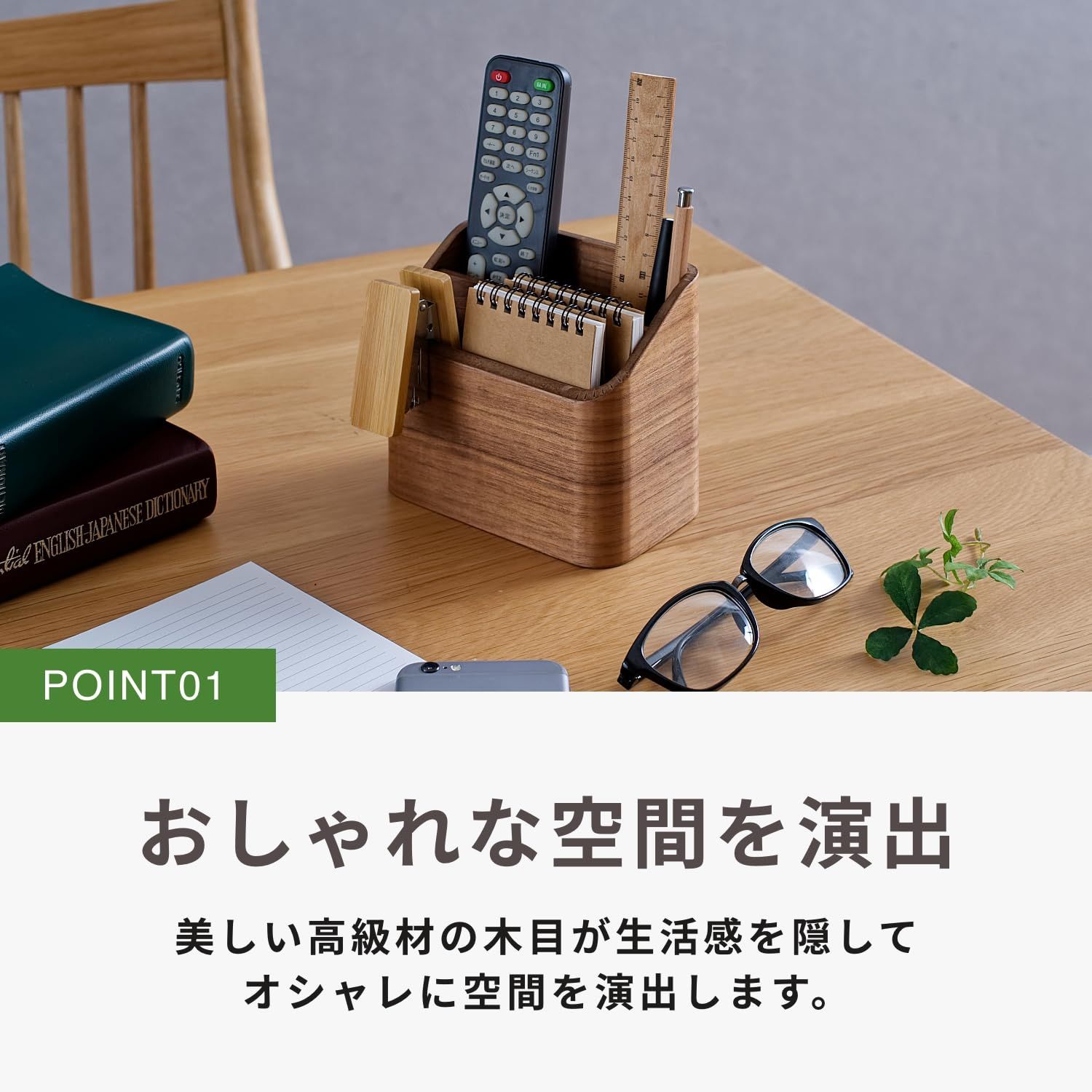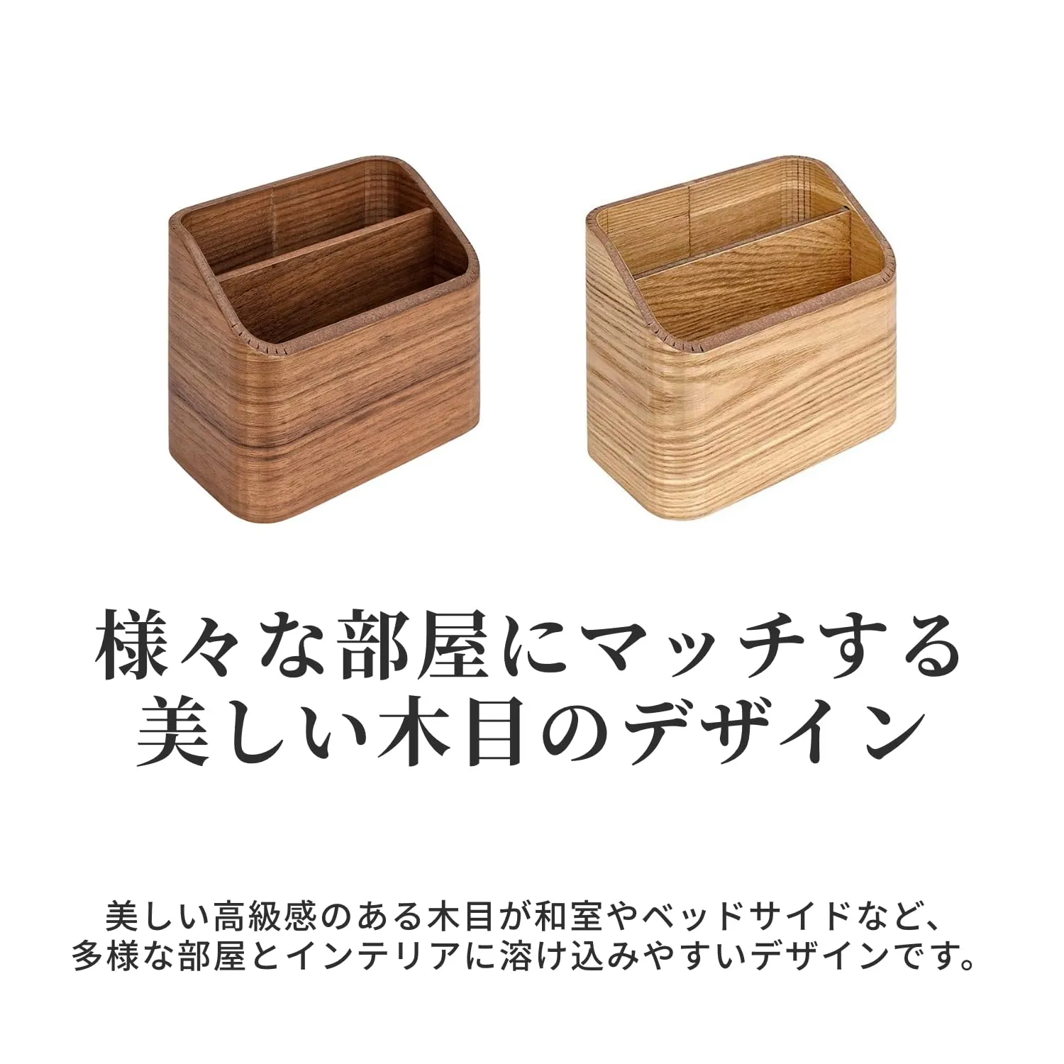 高級材の雰囲気を楽しむ小物収納インテリア。家具高級材で知られるタモ天然木を小物インテリアに使用しました(突板仕様)。美しい木目がインテリアに溶け込みやすいデザインです。