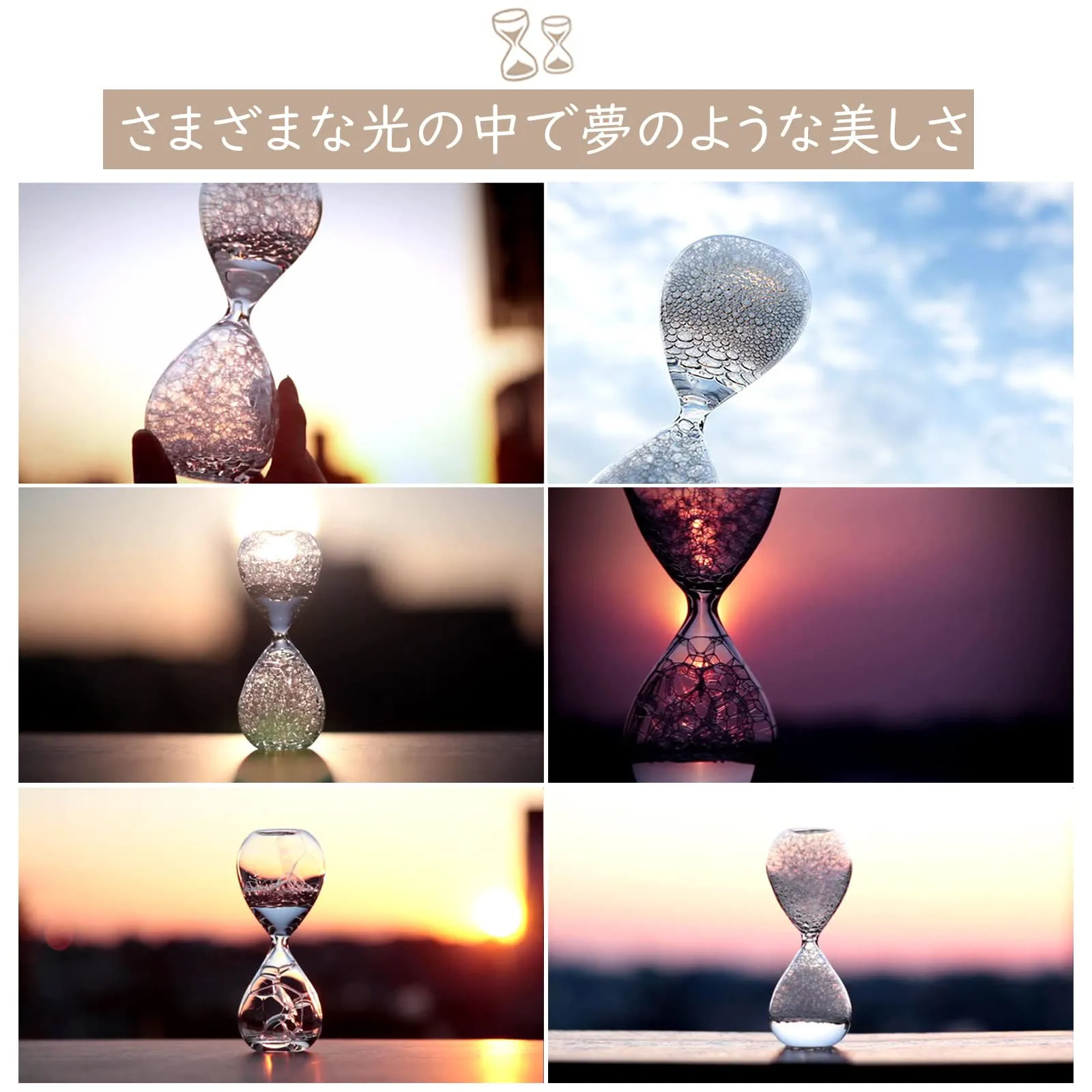 【幅広い用途】砂時計はデスクトップアクセサリーや写真撮影の小道具として広く使用されています。 砂時計は愛、友情、幸福を象徴しています。友達や恋人へのプレゼントにもおすすめです。 これはおもちゃになり、好奇心旺盛な子供たちは特にそれを好きになるでしょう。