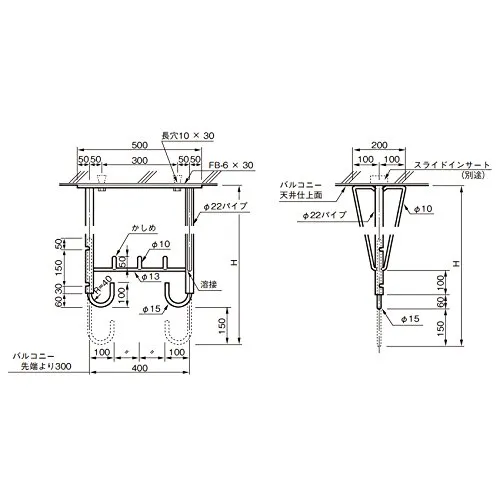 機構(公団)住宅AE-503・公共住宅E-404の物干金物に該当いたします。
