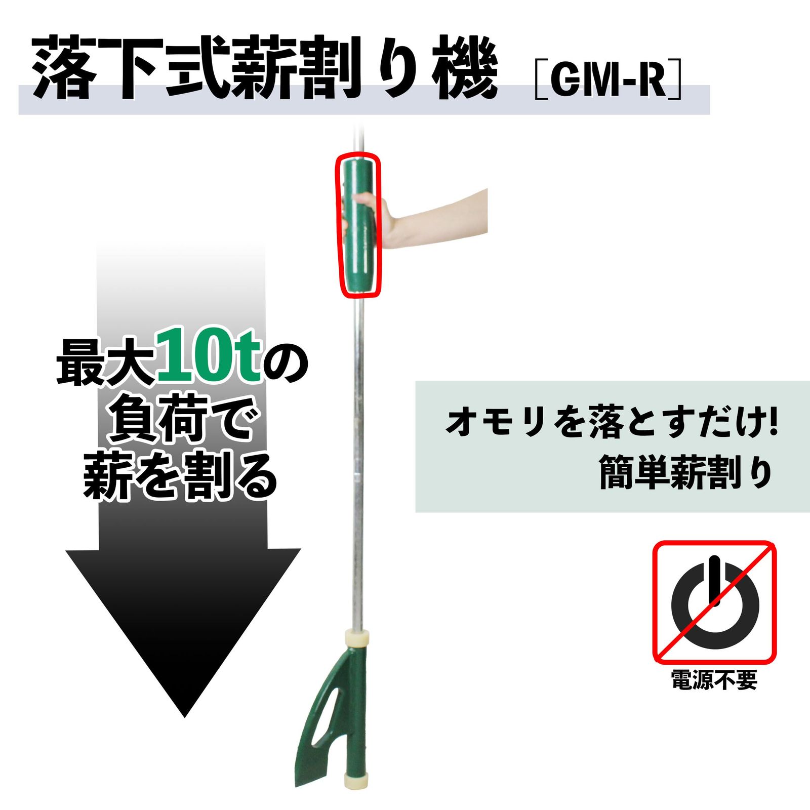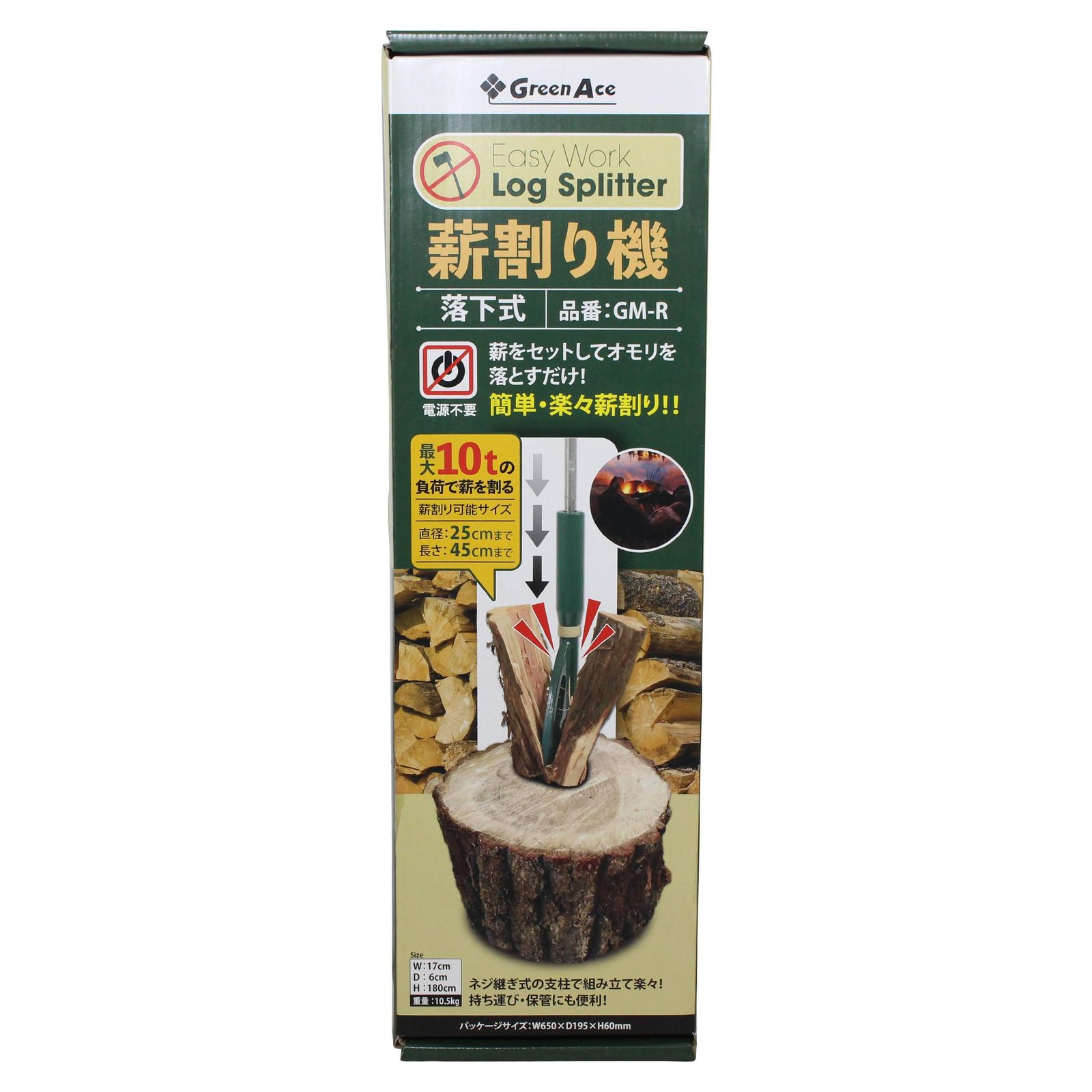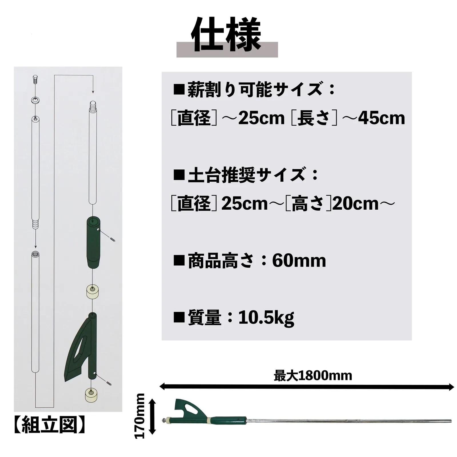 仕様:切断最大負荷:約10t、最大薪長:45cm、最大薪直径:25cm