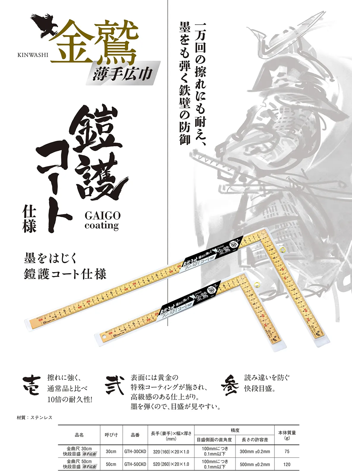 ・一万回の擦れにも耐え、墨もはじく特殊鎧護コート仕様