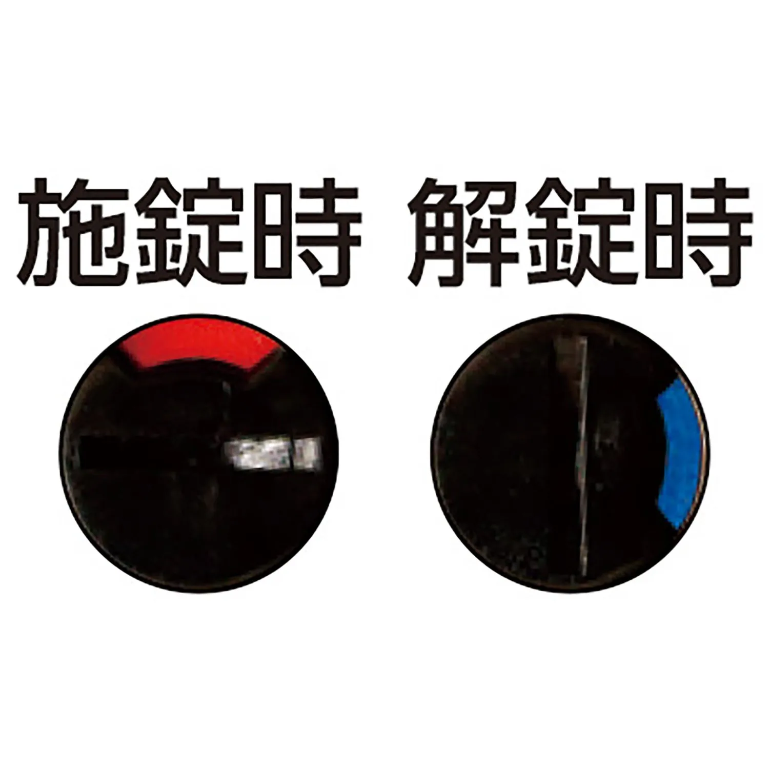 室内側はツマミで開け閉めします。カギを閉めると「赤」、開けると「青」が表示されるタイプです。