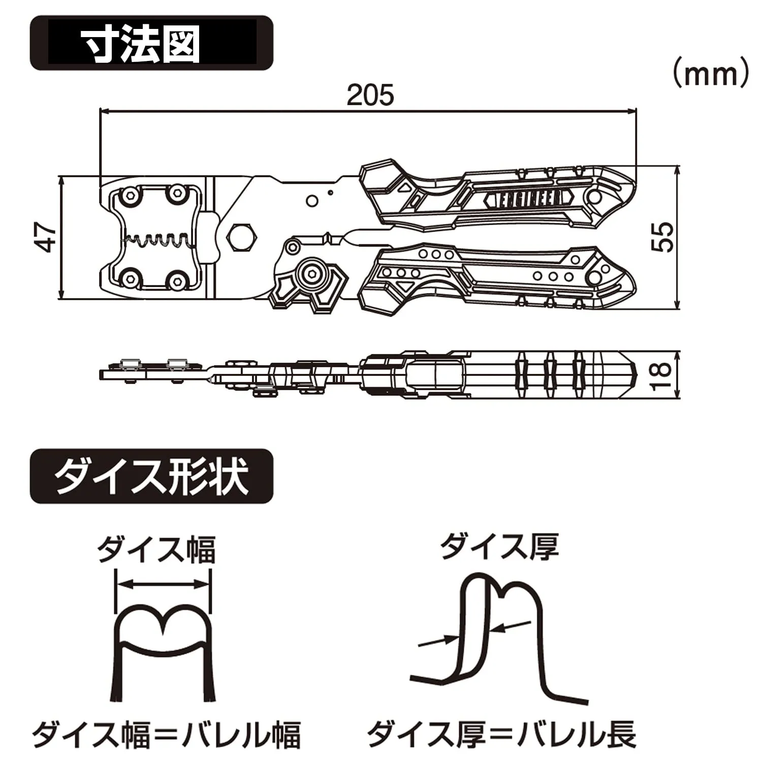 別売りのダイスと交換すればさらに多くの端子に対応。