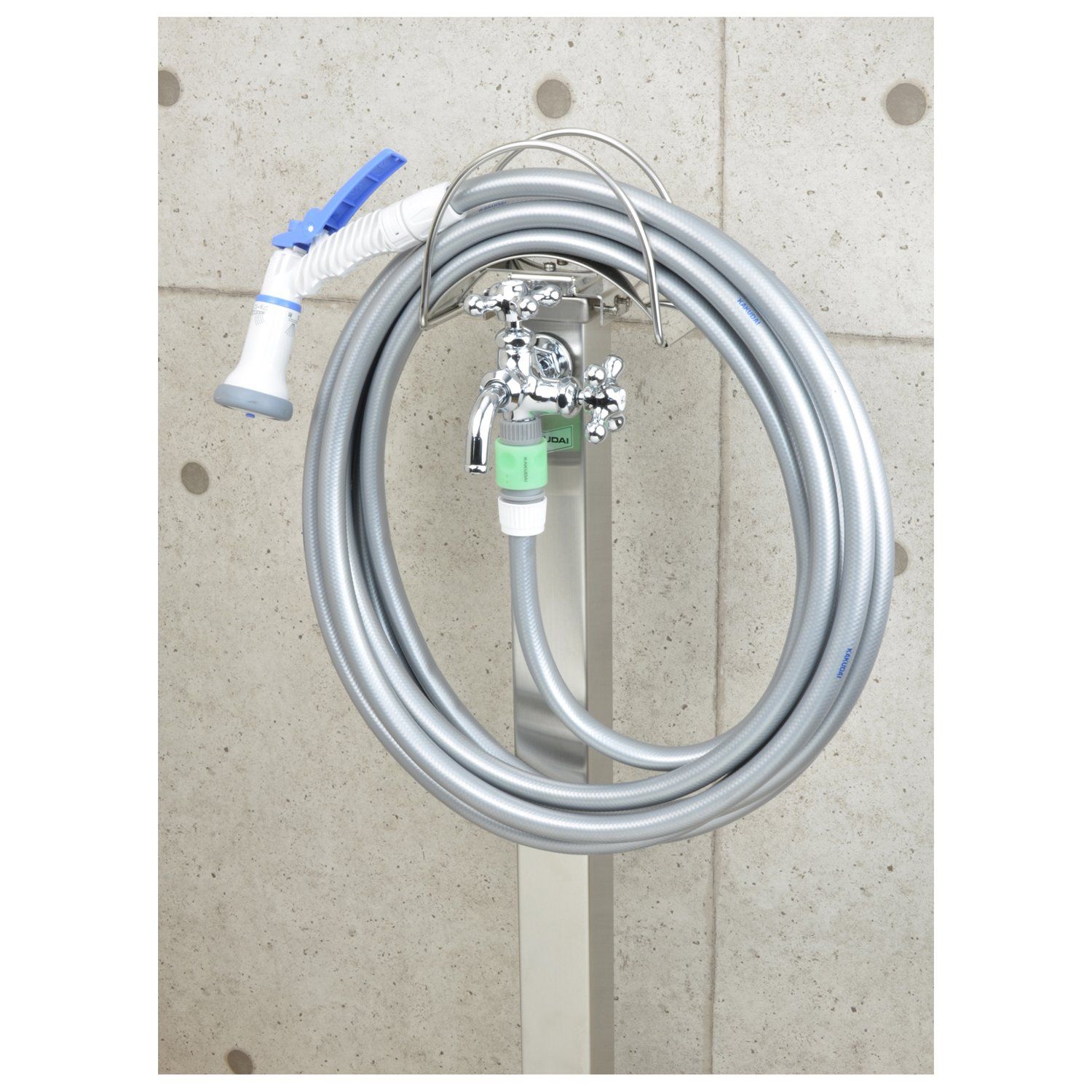 水栓柱の上部に取付け、ホースを掛けることができるためスッキリ片付く