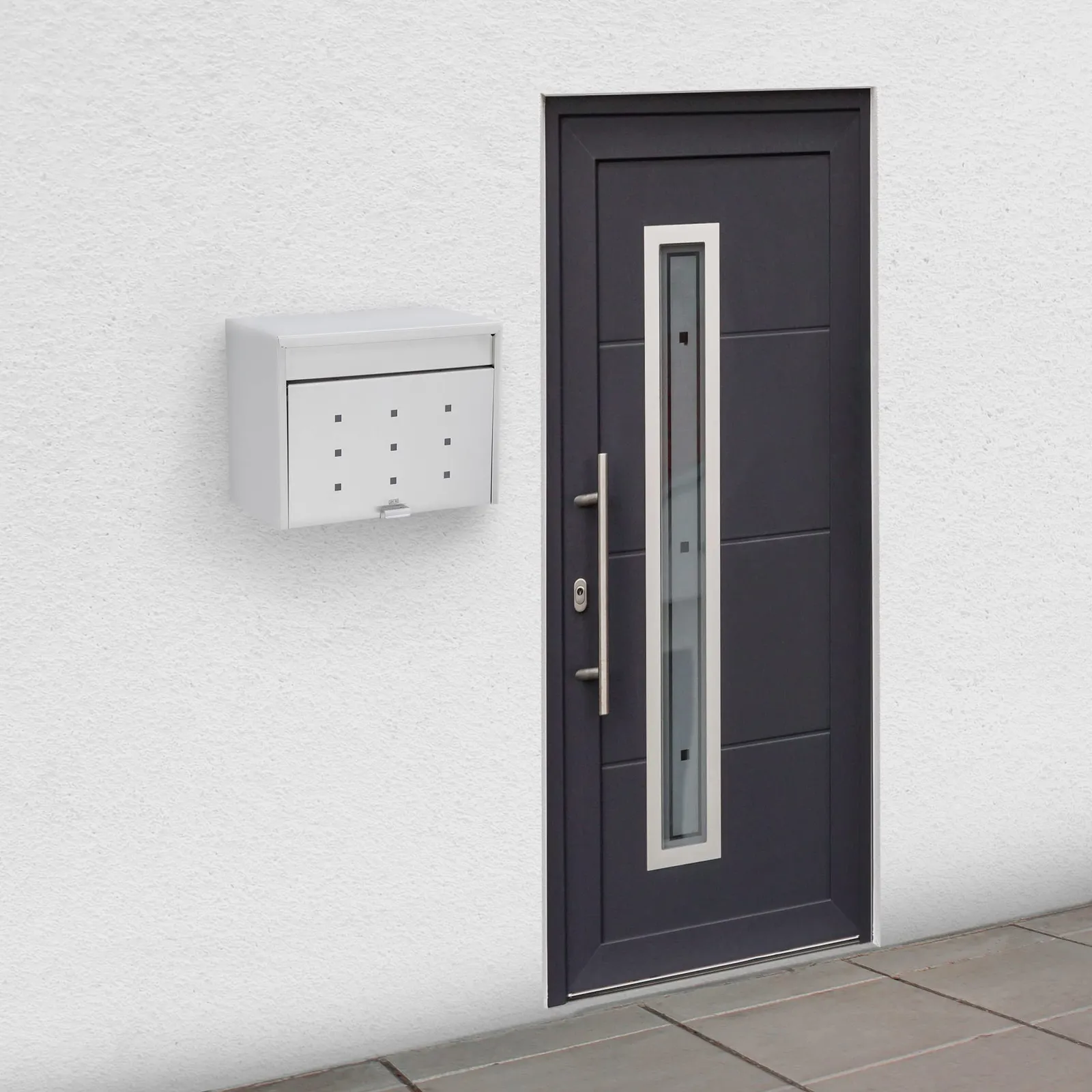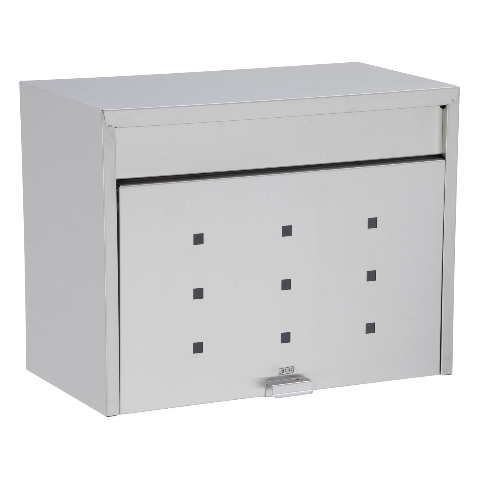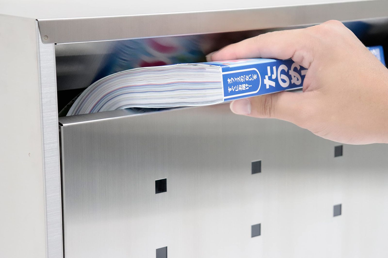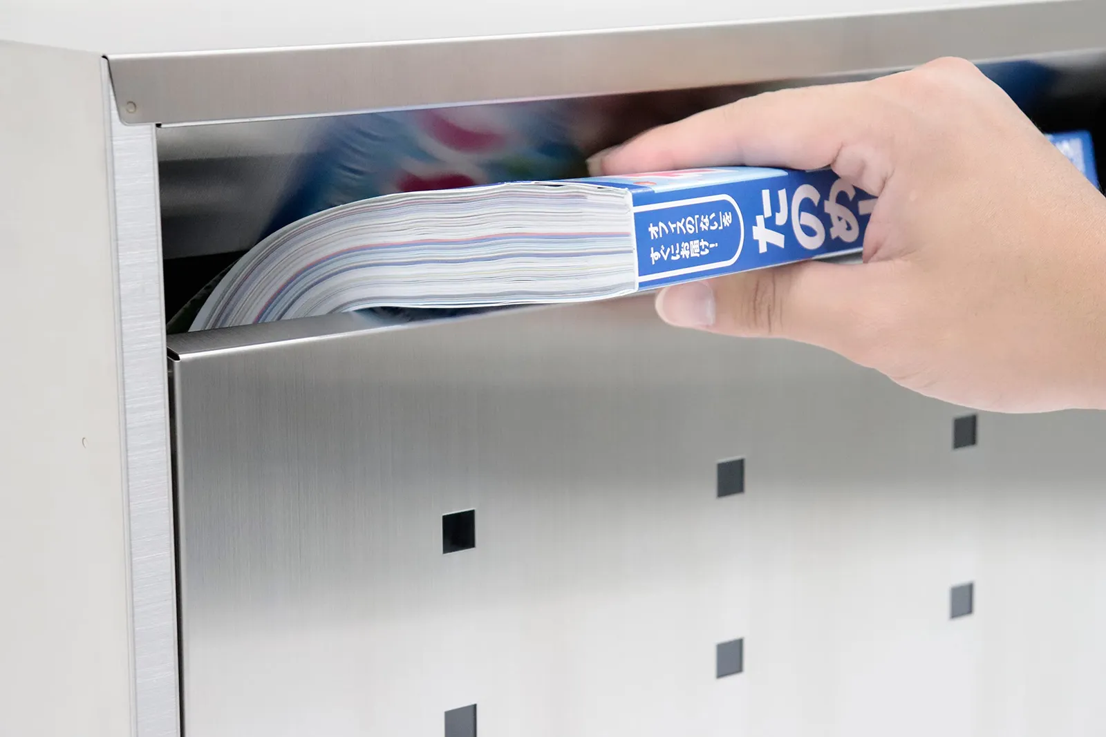 さびにくく耐久性のあるステンレス製の大型ポストです。住宅と調和するモダンなデザインです。幅が広く、B4サイズ封筒や回覧板、雑誌がラクラク入ります。投函可能サイズはW340×D260×H35㎜です。市販の内径φ7㎜南京錠(別売)を取り付けてることで大切な郵便物を守ります。