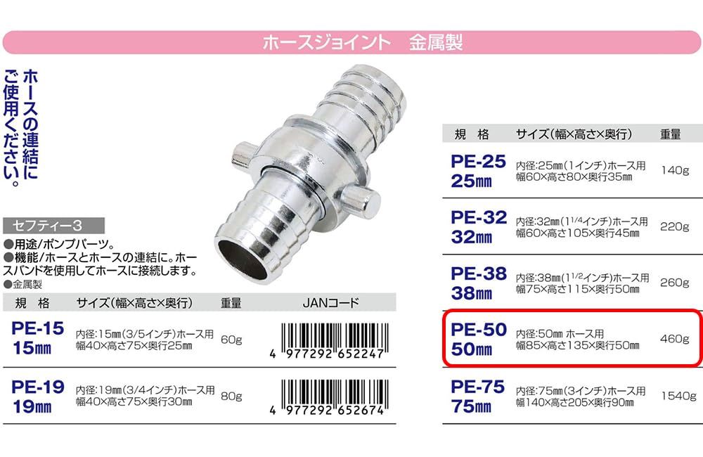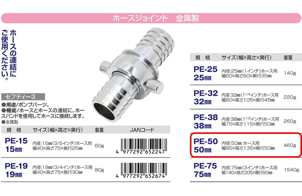 適合:内径50mm(2インチ)ホース用
